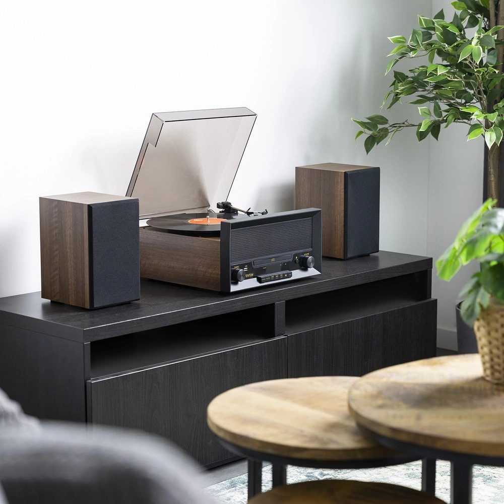 Szukasz kompletnego zestawu dla wszystkich Twoich muzycznych potrzeb? W takim razie ten gramofon Fenton RP135WSET jest dokładnie tym, czego szukasz. Wszechstronny gramofon wyposażony jest w Bluetooth, odtwarzacz CD, odtwarzacz i nagrywarkę USB MP3, radio FM oraz wejście liniowe AUX. Dzięki osobnym głośnikom możesz cieszyć się cudownie przestrzennym dźwiękiem przy odtwarzaniu stereo.