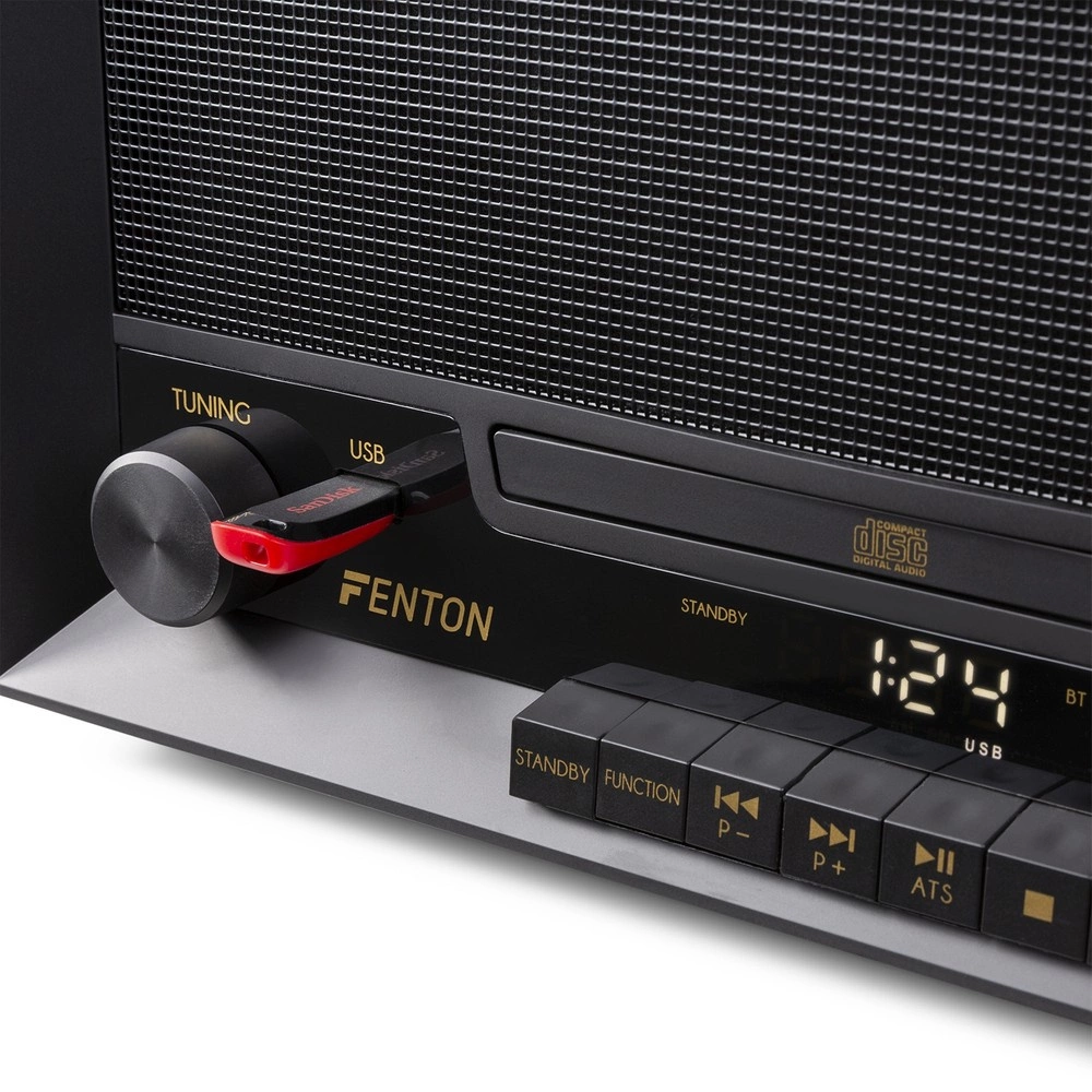 Wbudowany odtwarzacz CD gramofonu zapewnia, że nadal możesz odtwarzać swoje płyty. Czy masz dużo muzyki w postaci cyfrowej jako mp3? Umieść go na pamięci USB i pozwól wewnętrznemu odtwarzaczowi MP3 odtwarzać muzykę bezpośrednio z pamięci USB. Możliwe jest również wykorzystanie odtwarzacza MP3 do nagrywania. W ten sposób możesz łatwo i szybko przekonwertować swoje nagrania na MP3.