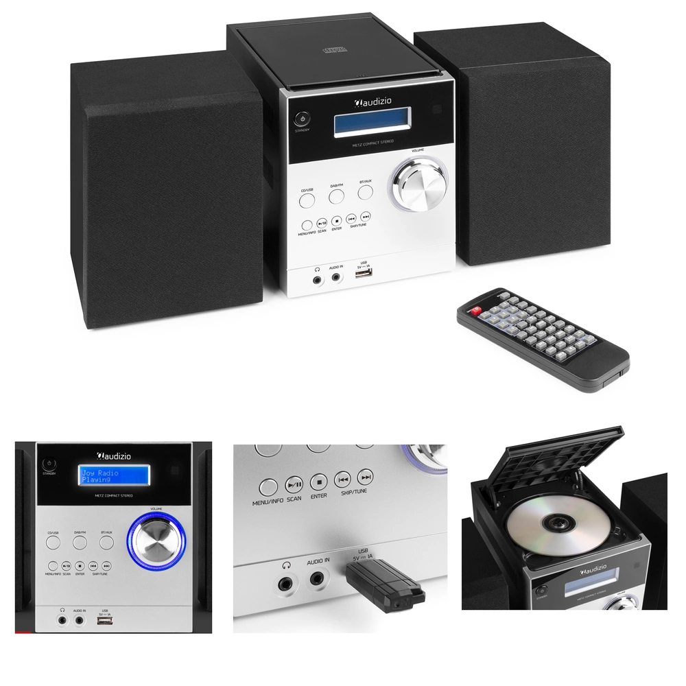 Wieża stereo Audizio Metz z DAB+, FM, BT oraz odtwarzaczem MP3 i CD