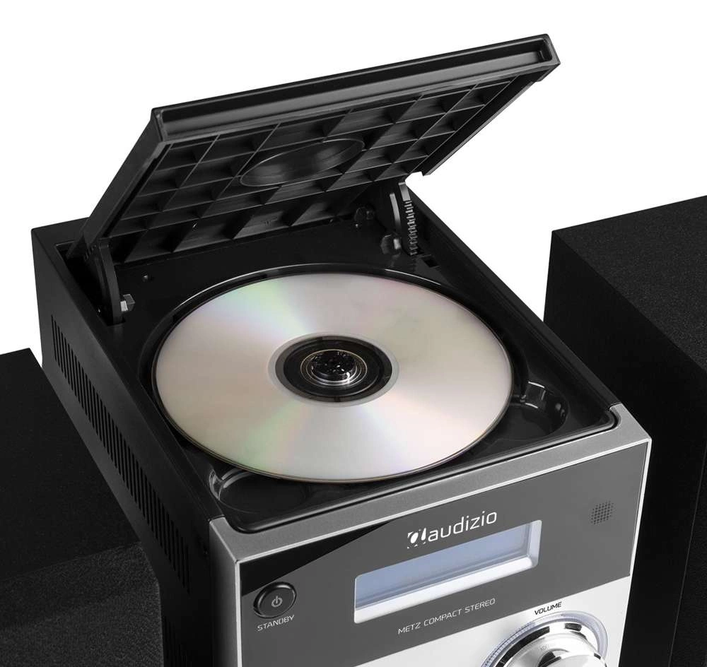 Masz jeszcze dużo płyt CD? Nie ma problemu! Audizio Metz odtwarza również płyty CD. Odtwarza również płyty CD-R i CD-RW, dzięki czemu możesz także komponować własne płyty CD.