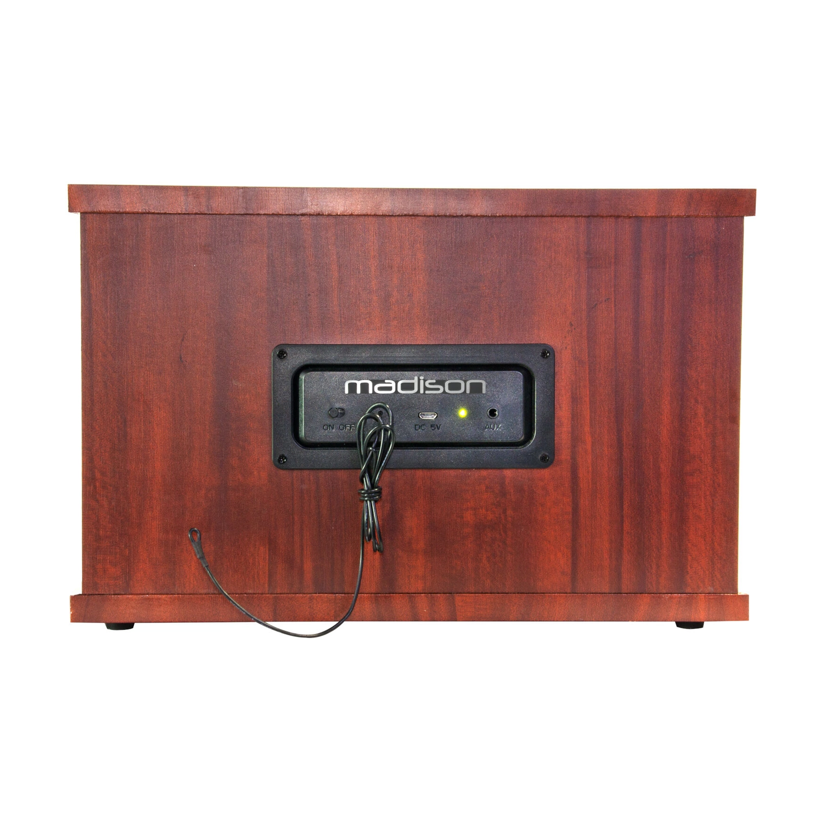 Dzięki drewnianej obudowie i złotym przyciskom radio Madison Vintage ma wyjątkowy i charakterystyczny styl vintage. Dekoracyjny charakter tego radia doskonale przyczyni się do wysublimowania Twojego wnętrza.
