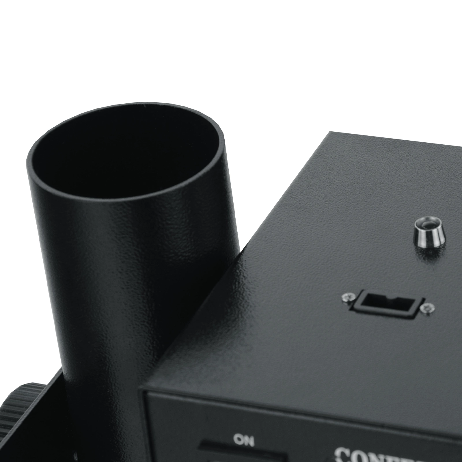 Urządzenie oferuje dwa tryby sterowania: zdalne sterowanie oraz DMX, co zapewnia użytkownikowi pełną elastyczność w kontroli wystrzałów konfetti. Wyrzutnia jest zasilana napięciem 220-240VAC 50Hz i posiada moc 100W, co gwarantuje niezawodność i efektywność działania.