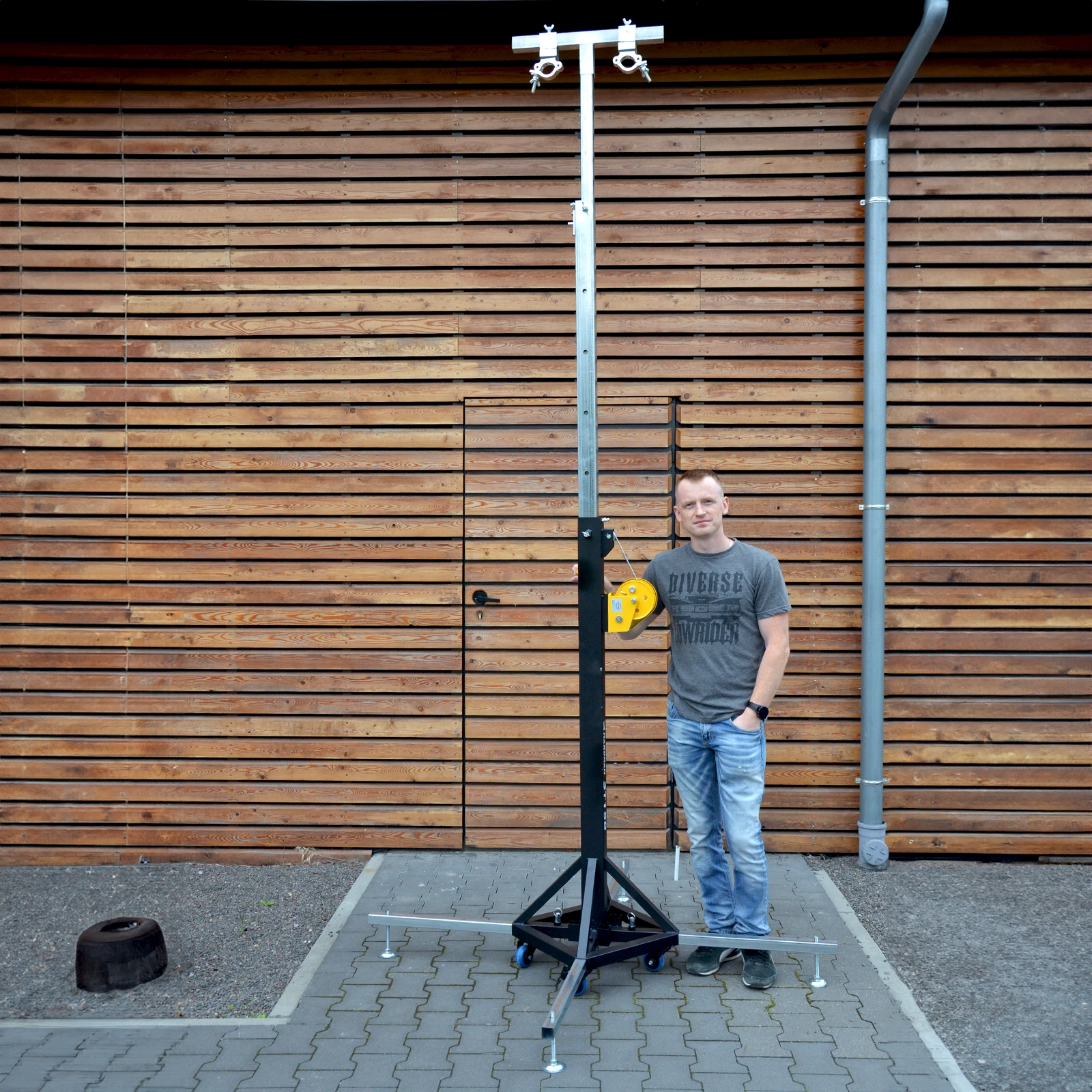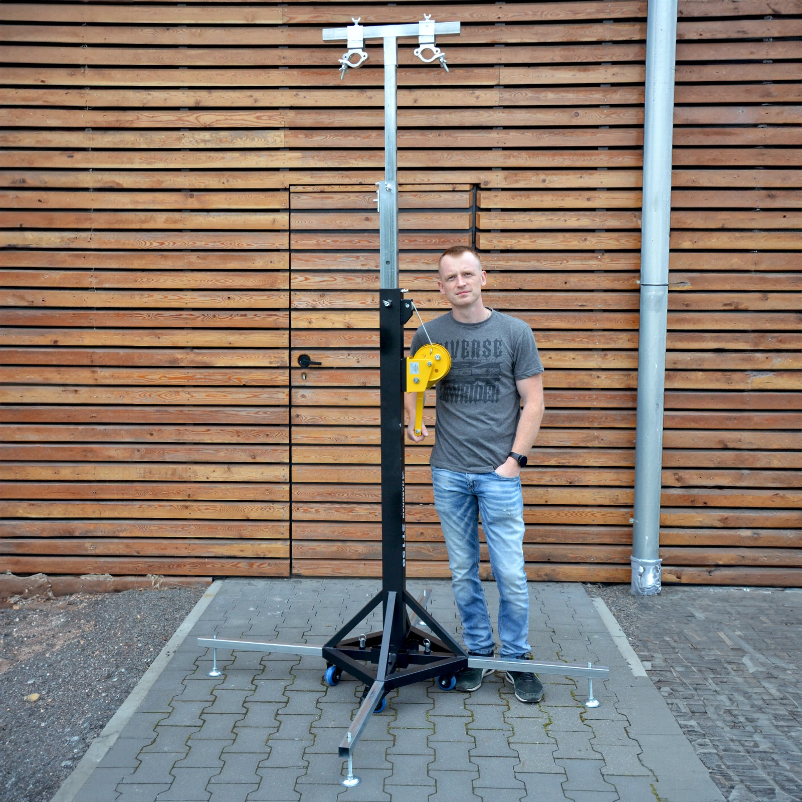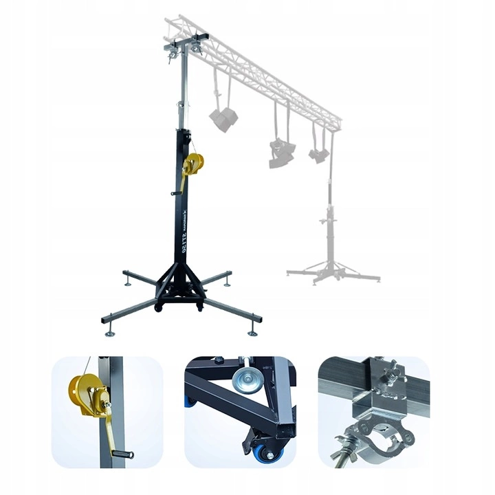 - Duży udźwig: Maksymalne obciążenie do 150 kg pozwala na bezpieczne montowanie ciężkich zestawów oświetleniowych oraz innych elementów scenicznych.
