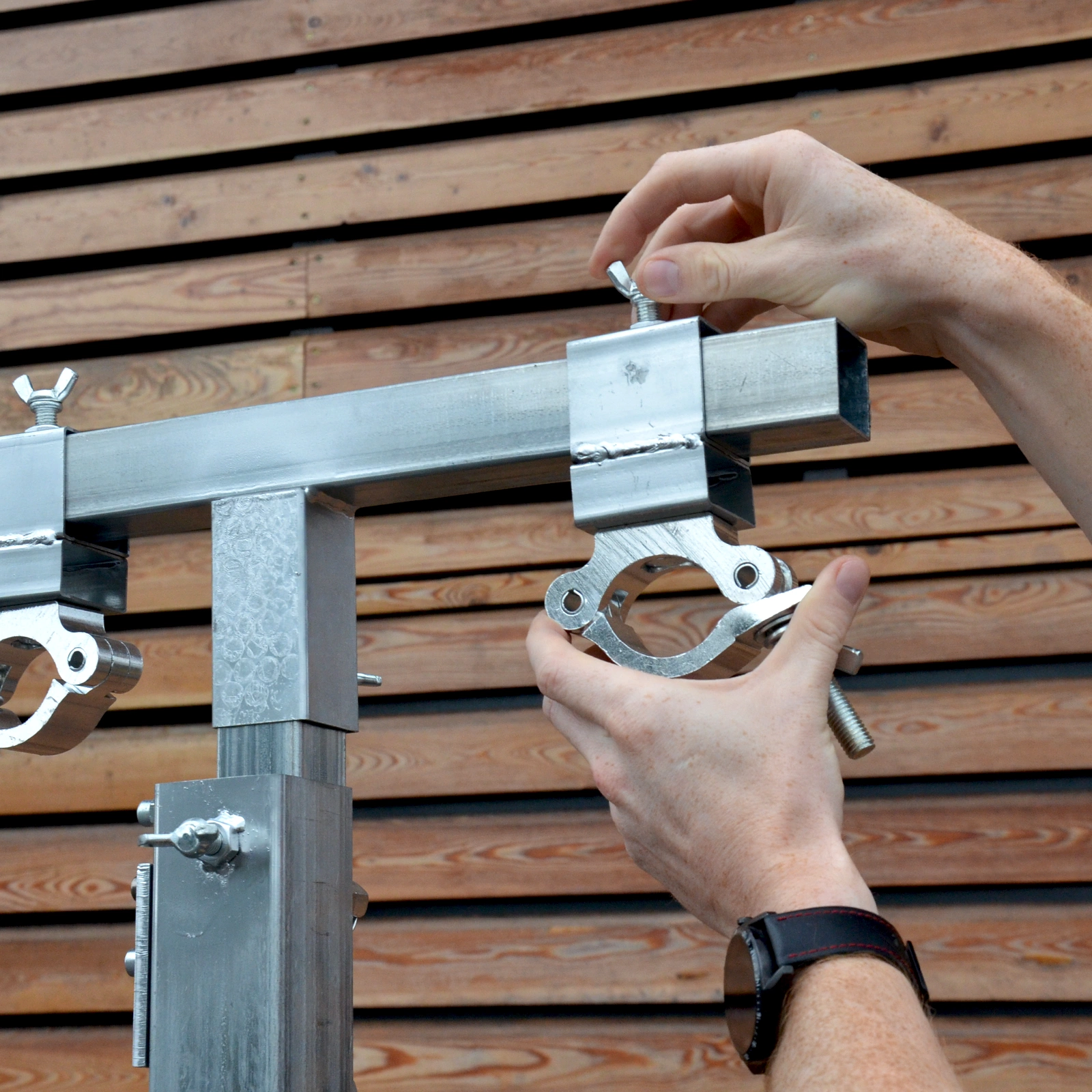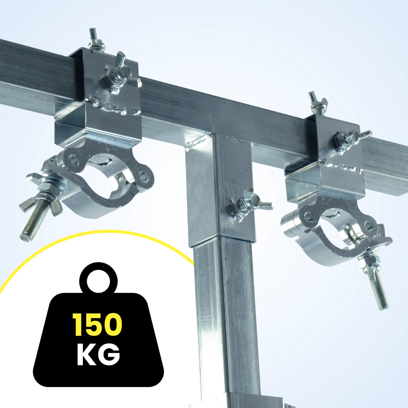 - Wszechstronność: Belka pozioma o długości 50 cm, wyposażona w dwie klamry, pasuje do kratownicy śrubowej 300x300 mm oraz 400x400 mm, co pozwala na elastyczny montaż różnych elementów scenicznych.
