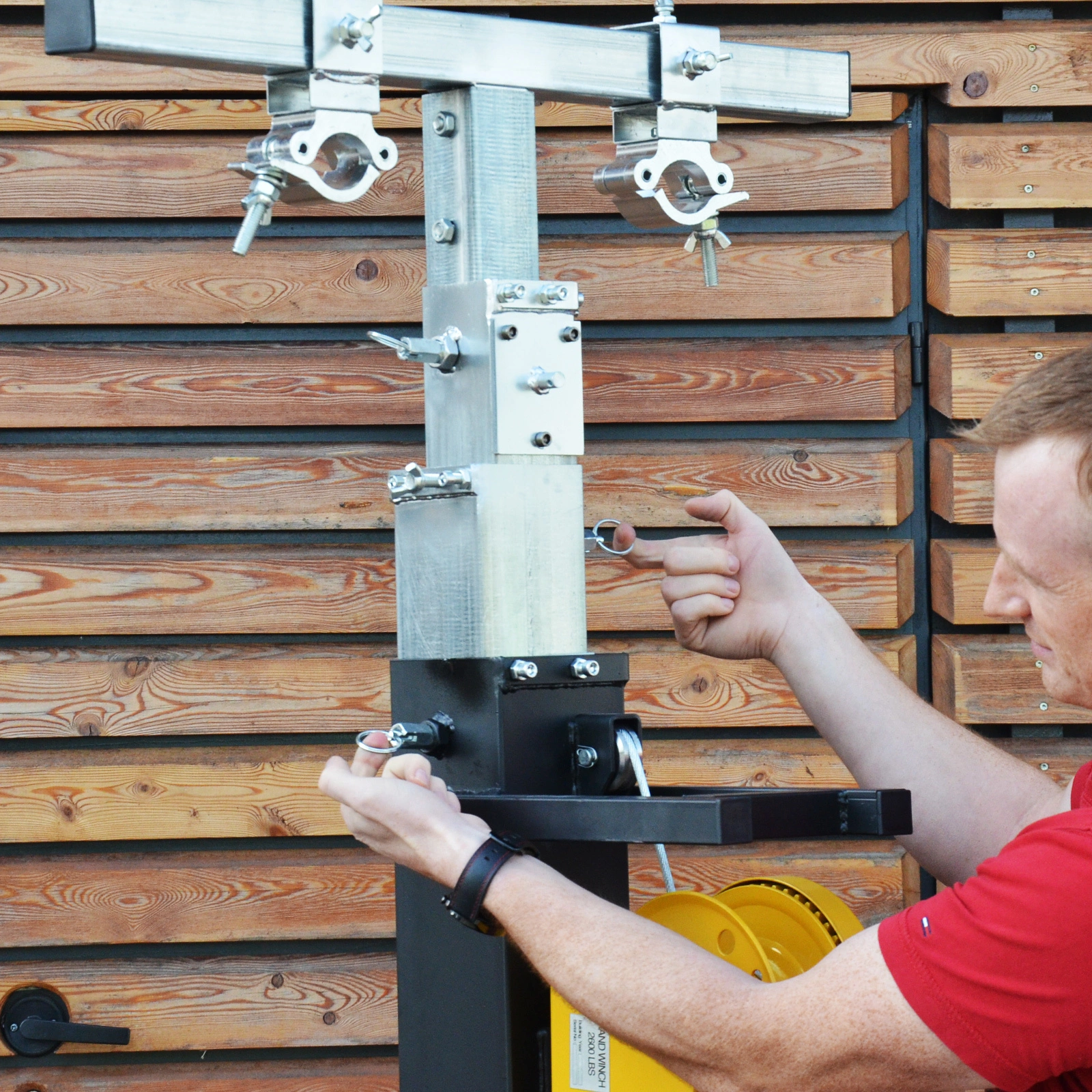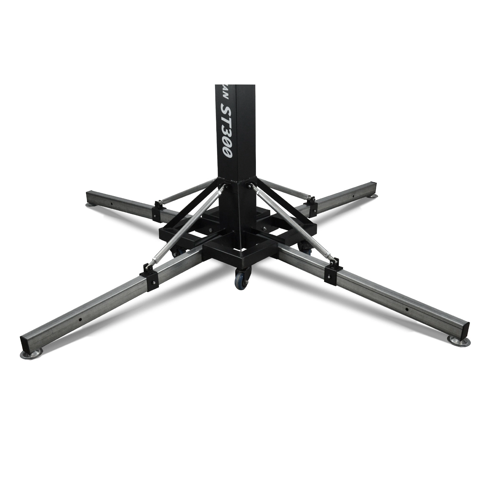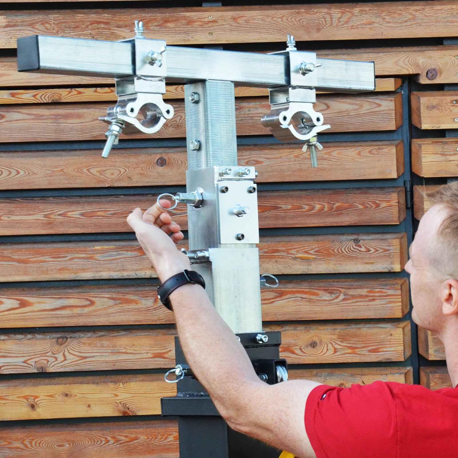 Wieża sceniczna ST300 HARDMAN to solidny i niezawodny statyw z wyciągarką, zaprojektowany z myślą o wymagających zastosowaniach w branży eventowej i scenicznej. Dzięki swojej konstrukcji i parametrom technicznym, jest idealnym rozwiązaniem do podnoszenia i utrzymywania ciężkiego sprzętu oświetleniowego, nagłośnieniowego oraz innych elementów scenicznych.