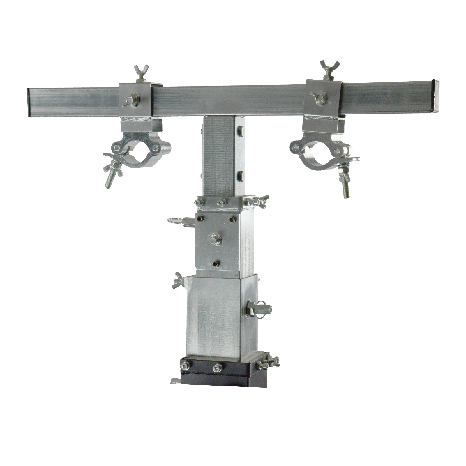 - Budowa mobilnych scen: Wieża ST300 HARDMAN może być kluczowym elementem przy tworzeniu mobilnych scen. Poprzez mocowanie elementów kratownic do zaczepów na górze wieży, możliwe jest stworzenie stabilnej konstrukcji scenicznej. W tym celu, zazwyczaj wykorzystuje się kilka takich wież, przy czym minimalna ilość to dwie. Dzięki temu można zbudować solidną i bezpieczną ramę sceny, która pozwala na zawieszenie różnorodnego sprzętu scenicznego, od oświetlenia po elementy dekoracyjne.