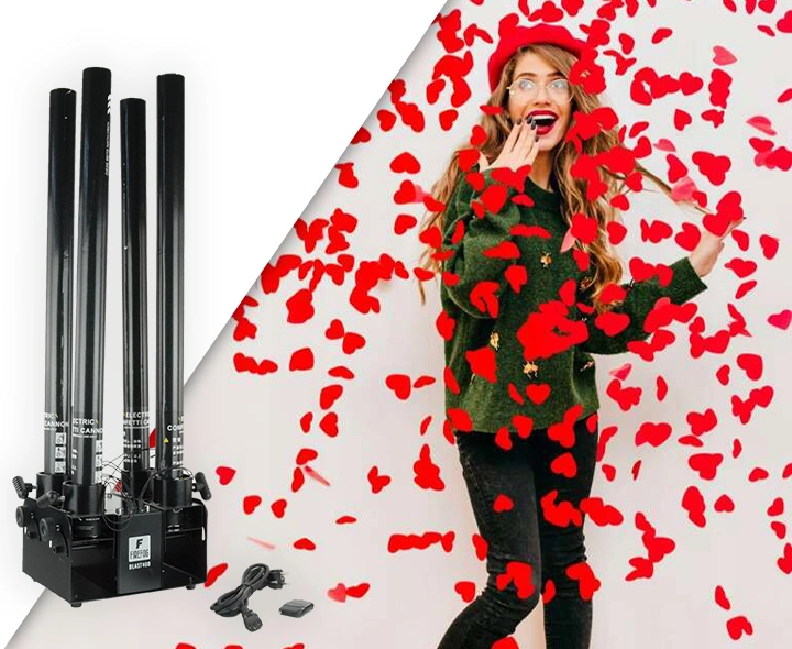 Wyrzutnia konfetti poczwórna elektryczna BLAST400 Firefog 4x tuba konfetti czerwone serca