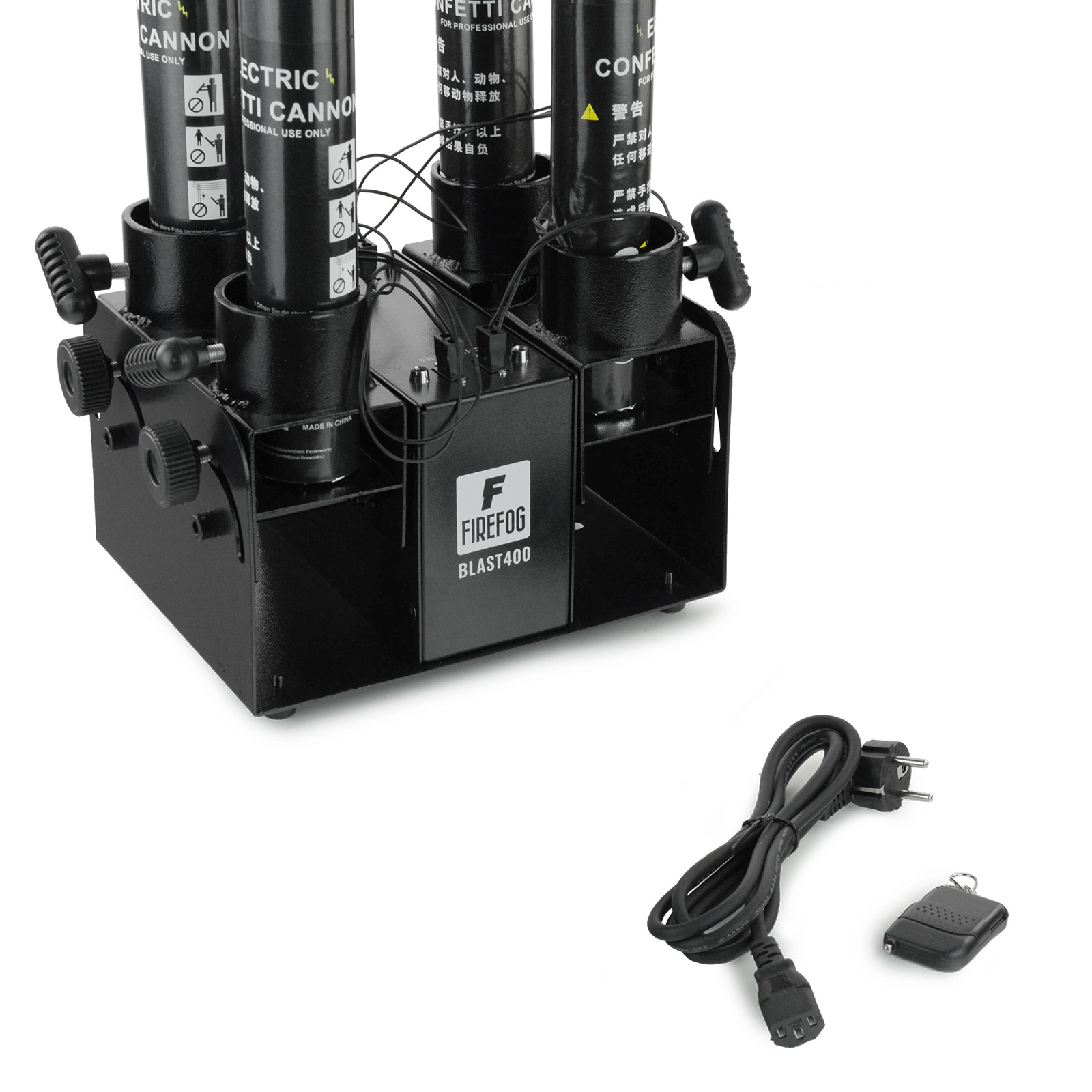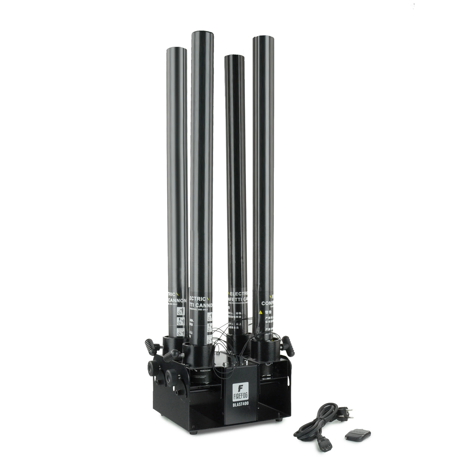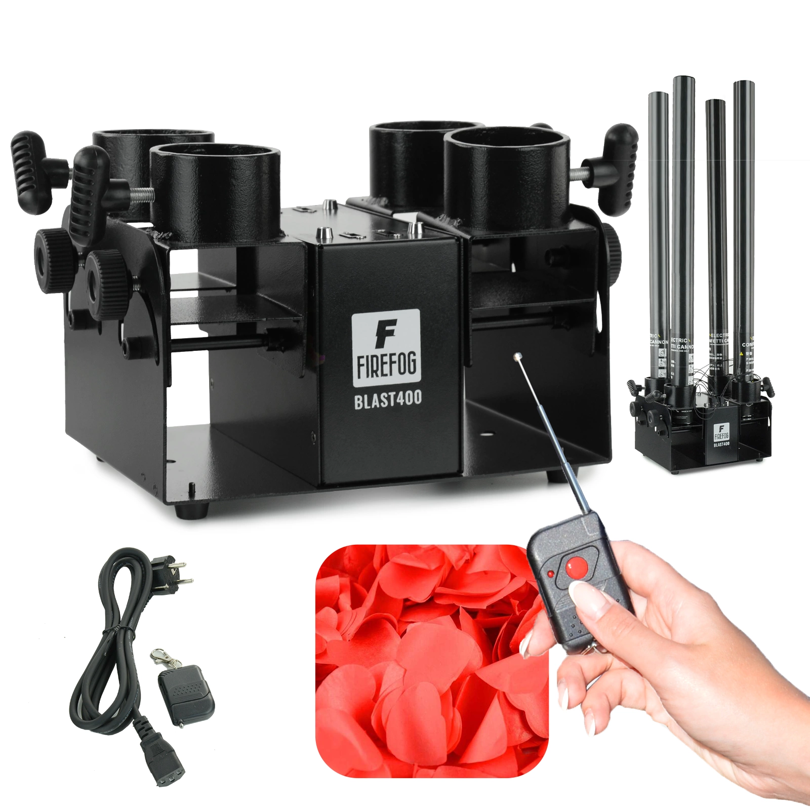 Dzięki swojej poczwórnej konstrukcji, BLAST400 Firefog może jednocześnie wystrzeliwać konfetti z czterech luf, co potęguje wizualny efekt i sprawia, że każda impreza, koncert czy uroczystość stają się niezapomnianym przeżyciem.