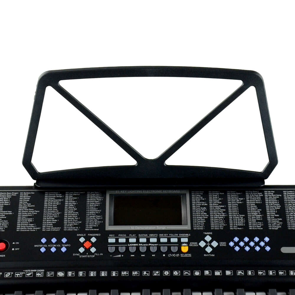 - 61-klawiszowa klawiatura z podświetleniem – system podświetlenia klawiszy ułatwia naukę gry, prowadząc użytkownika krok po kroku przez poszczególne utwory, co czyni ją doskonałym wyborem dla osób stawiających pierwsze kroki w świecie muzyki.