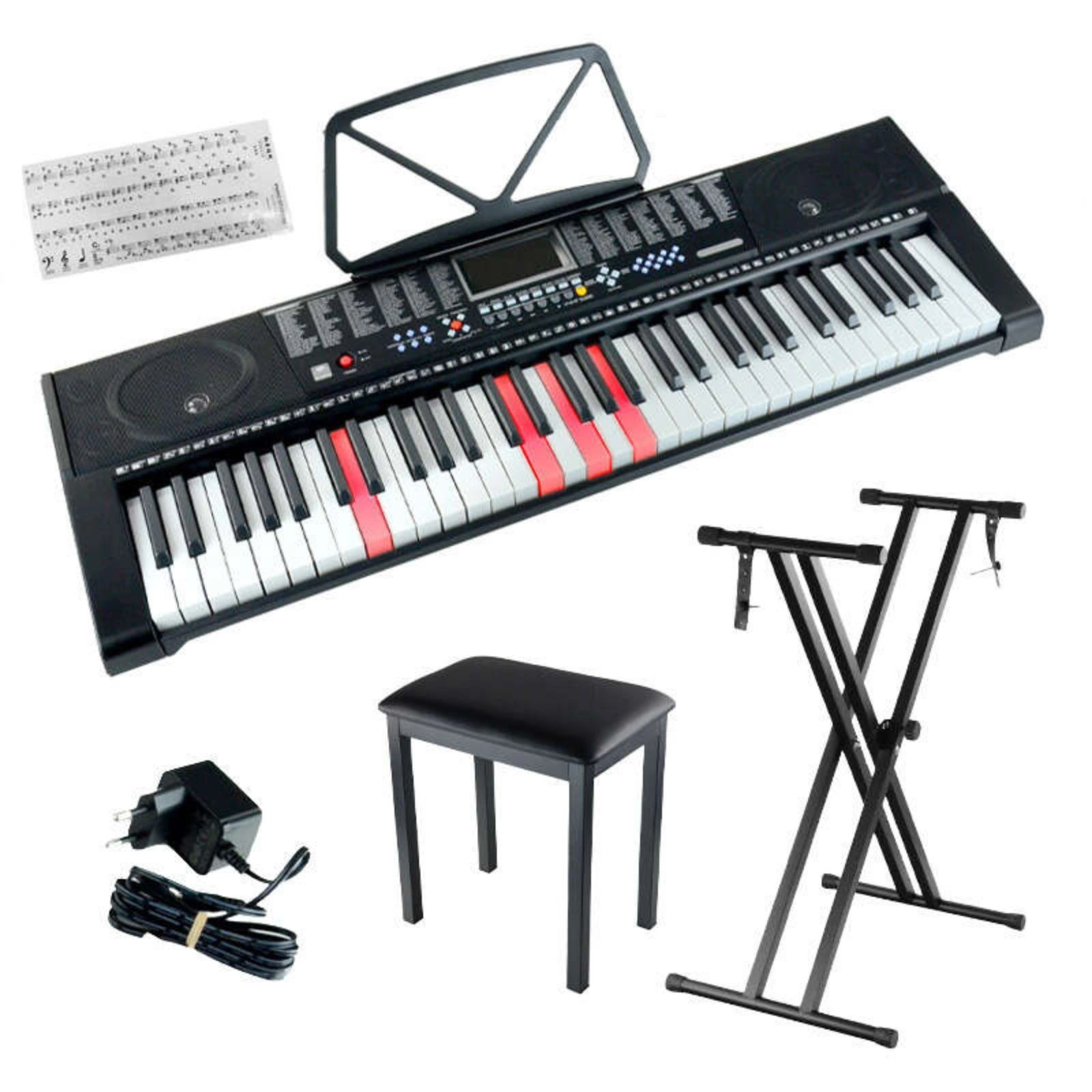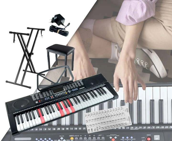 Zestaw: Keyboard 61 podświetlanych klawiszy+ podwójny statyw pod keyboard+ ławka+ naklejki na klawisze