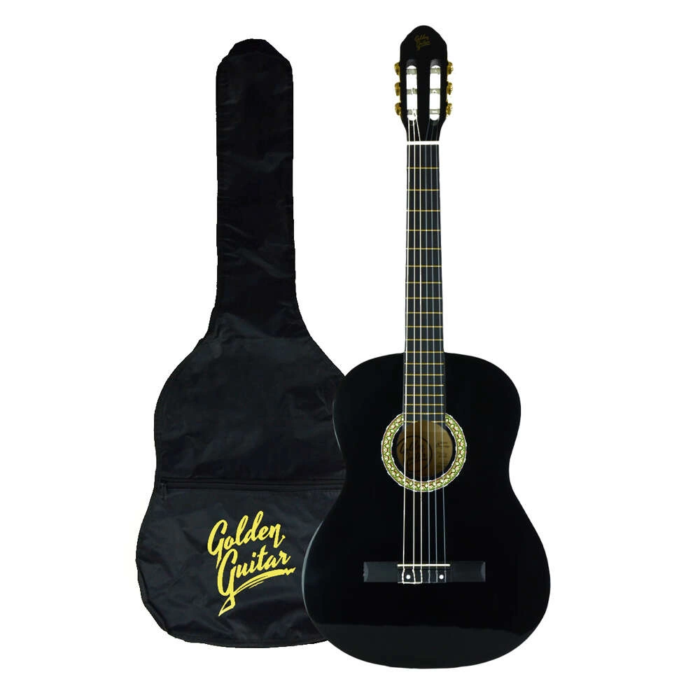 Zestaw: Gitara klasyczna 4/4 39" kolor czarny GKS39CZ Golden Guitar+ pokrowiec tuner struny kostki+ 2x statyw+ podnóżek