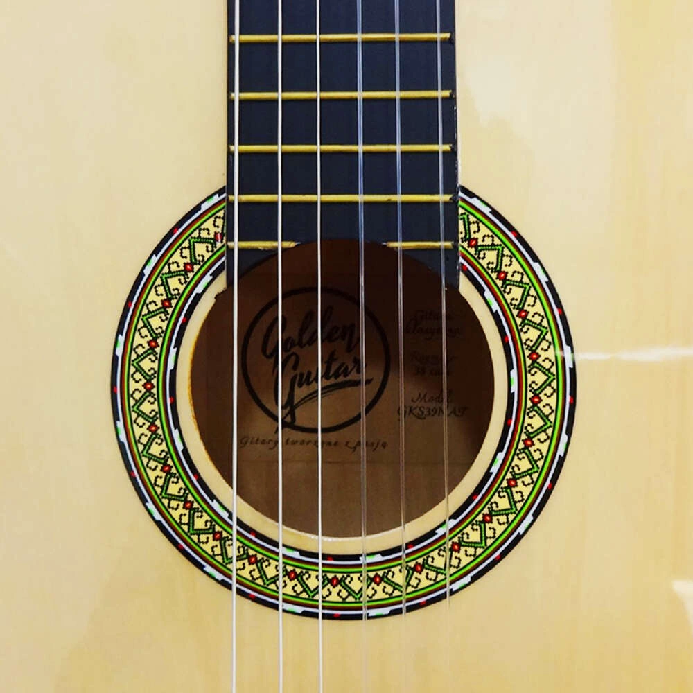 Gitara klasyczna Golden Guitar 4/4 (39”) to świetny wybór zarówno dla początkujących, jak i bardziej zaawansowanych gitarzystów. Jej konstrukcja, oparta na sprawdzonych materiałach, gwarantuje pełne i wyważone brzmienie, wysoki komfort gry oraz trwałość na lata.