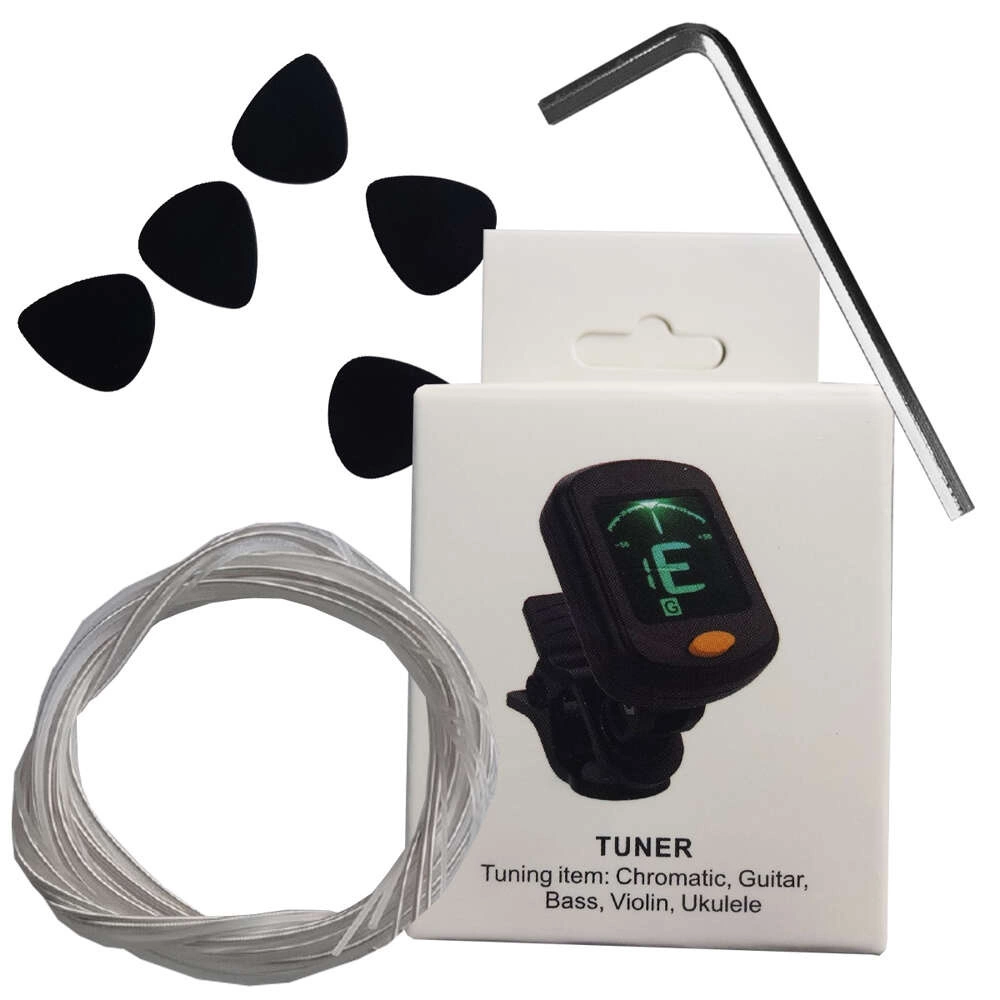 - W zestawie: pokrowiec, tuner, zapasowe struny, 5 kostek, dwa statywy ( ścienny i podłogowy) oraz podnóżek.