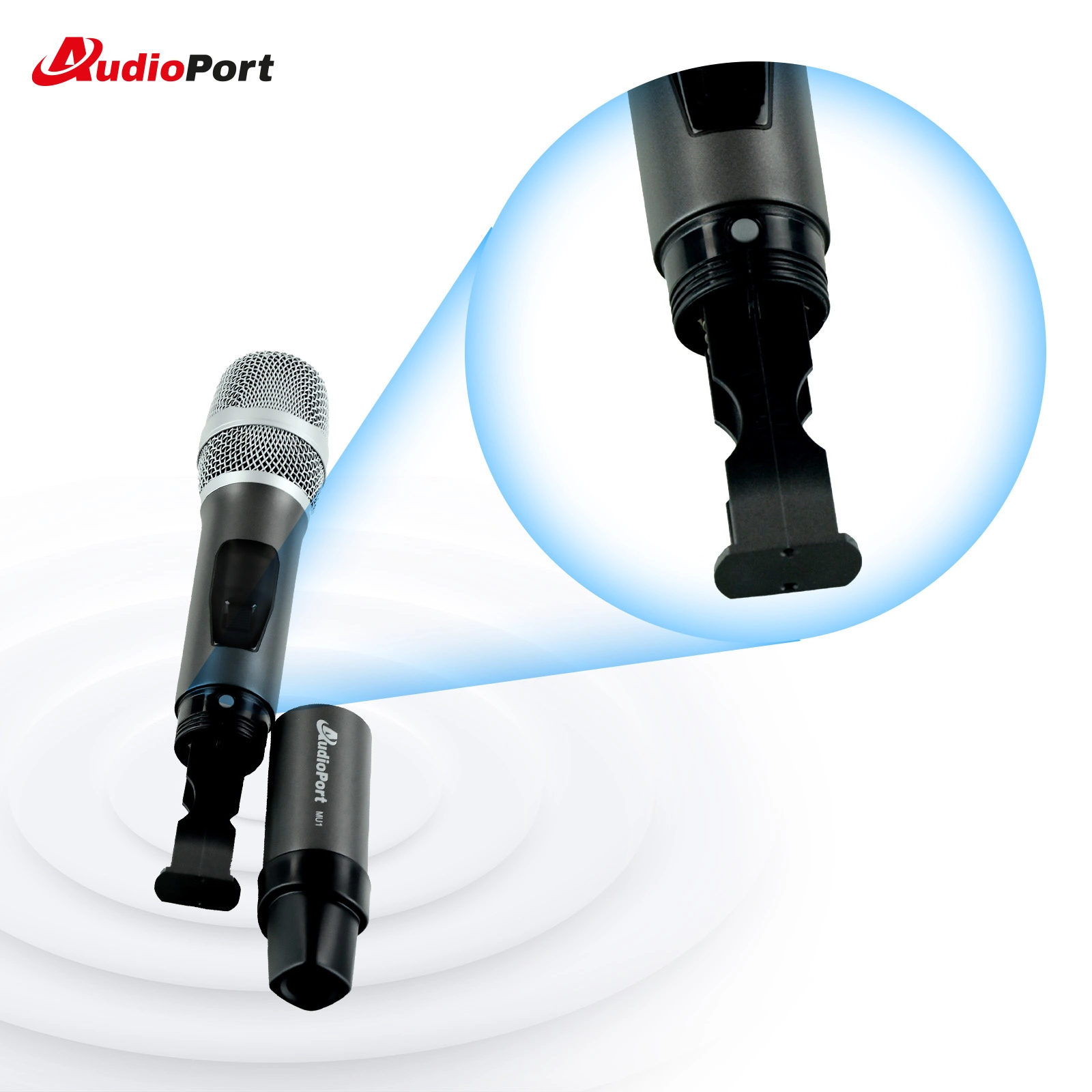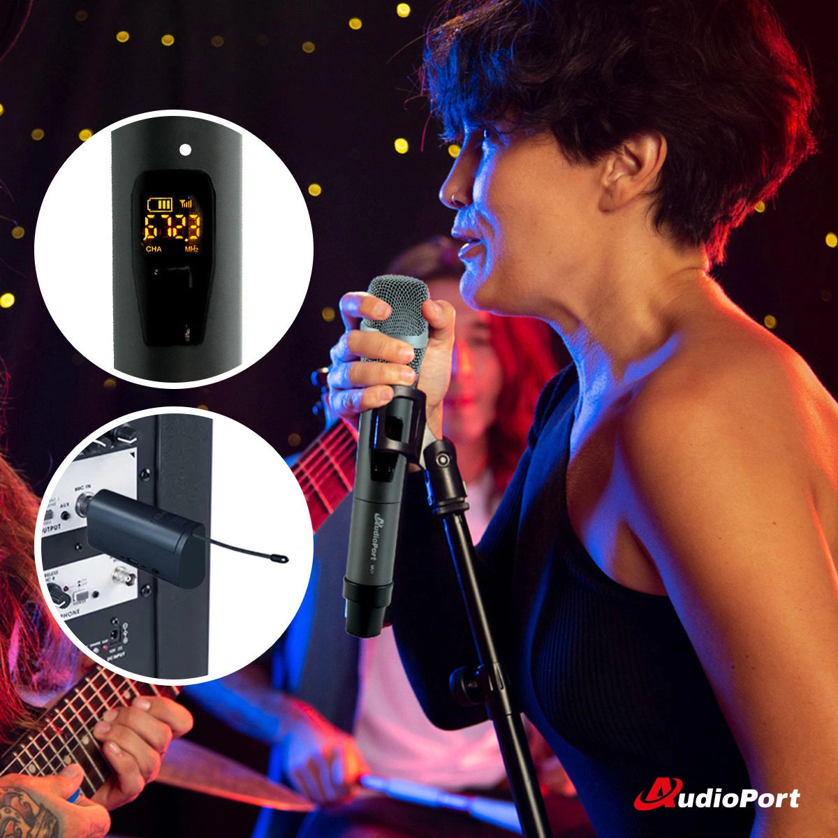 Mikrofon bezprzewodowy doręczny UHF+ odbiornik z baterią Audioport