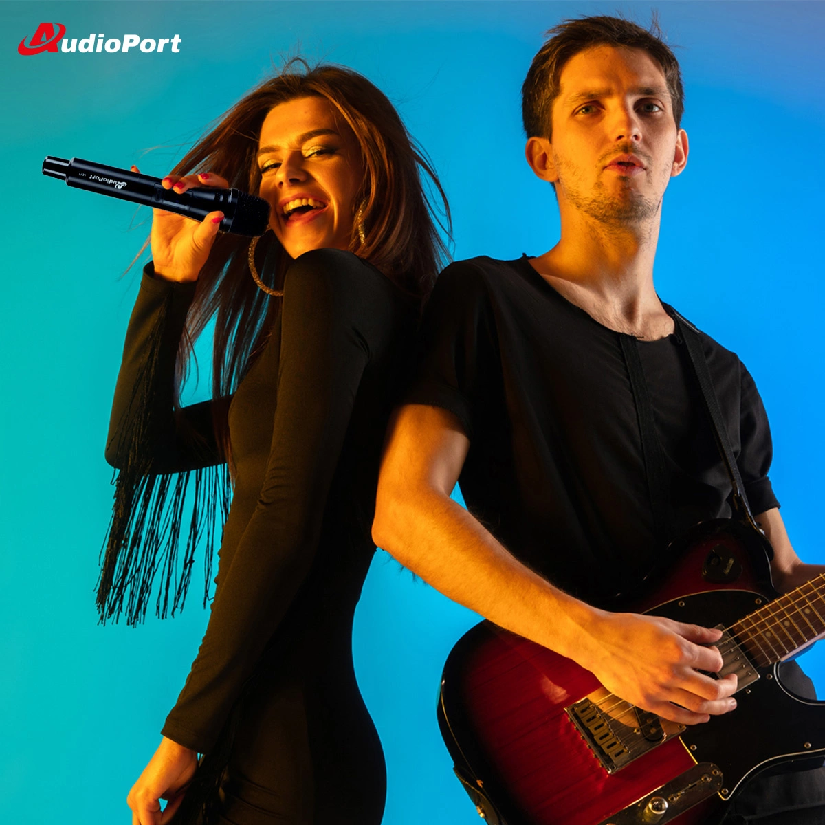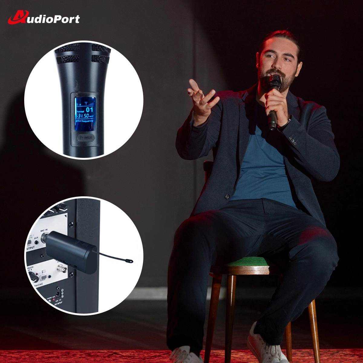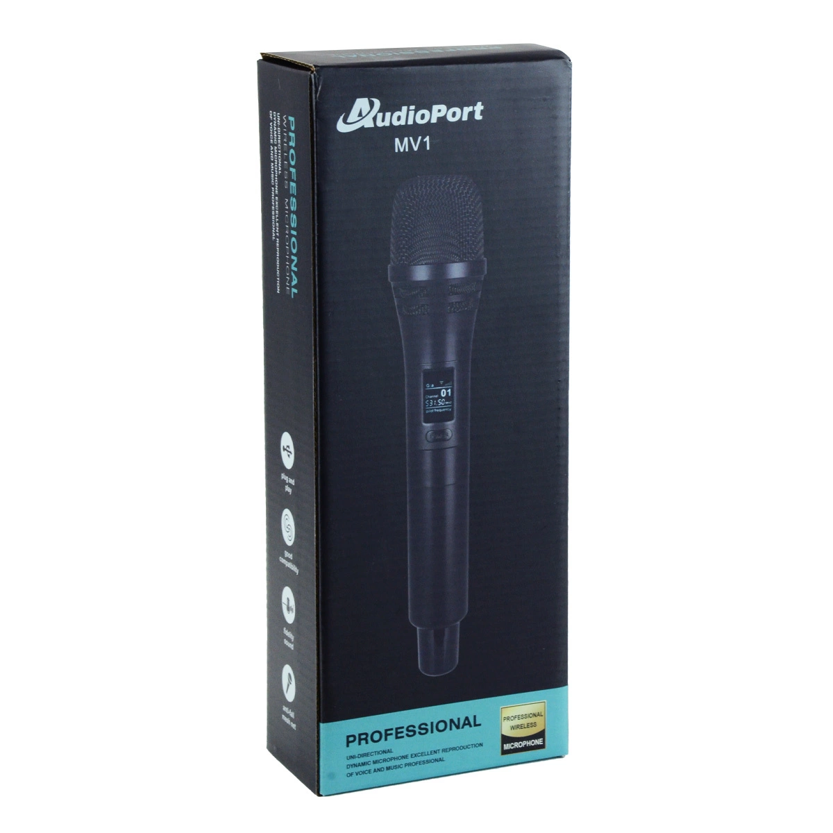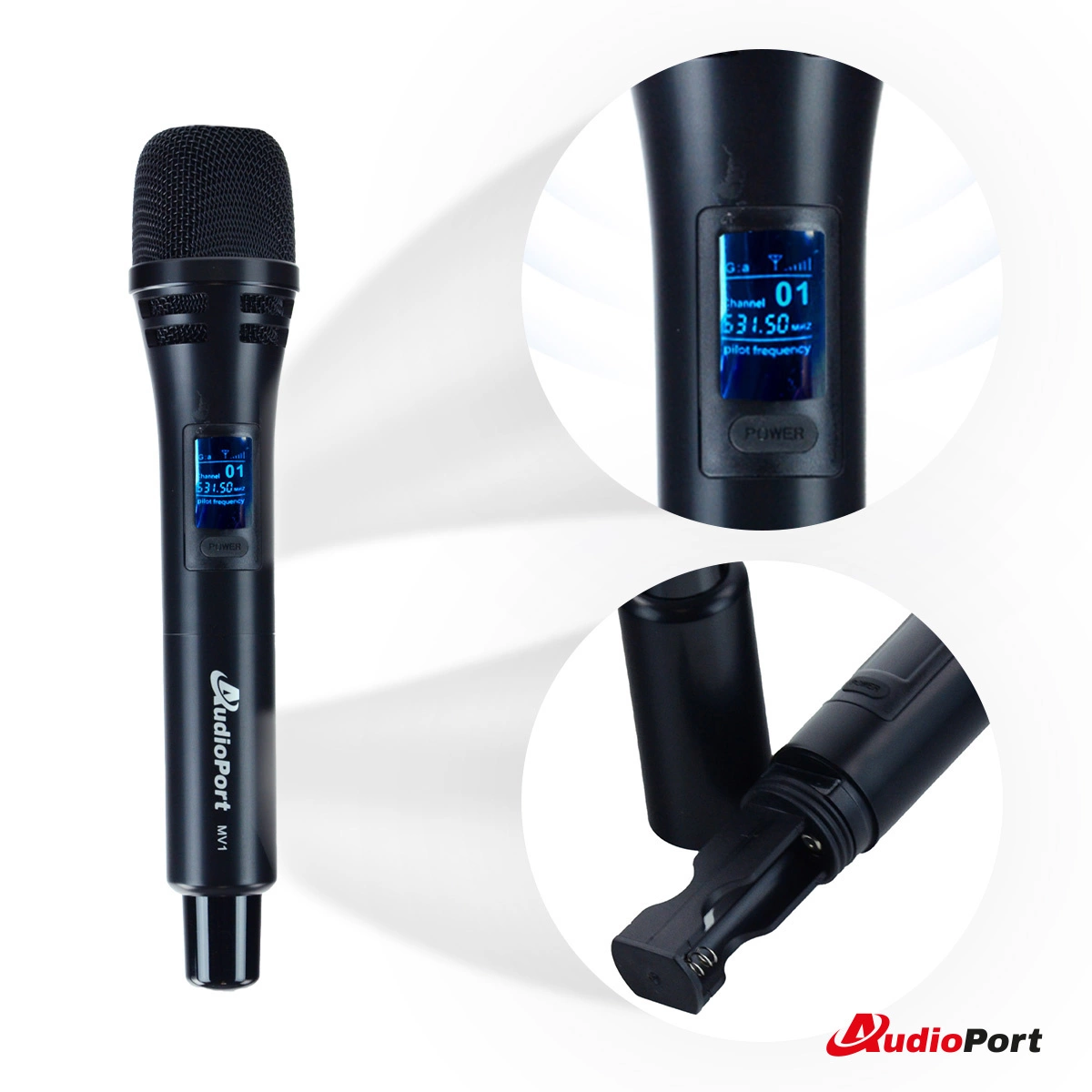 Audioport MV1 to ręczny mikrofon bezprzewodowy UHF, zapewniający stabilną transmisję dźwięku. Jego jednokierunkowa charakterystyka kardioidalna skutecznie redukuje niepożądane dźwięki z otoczenia, gwarantując czystą i wyraźną jakość audio.