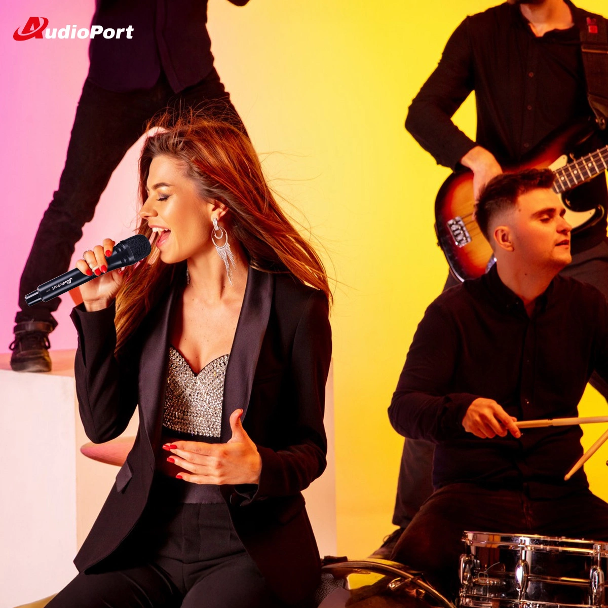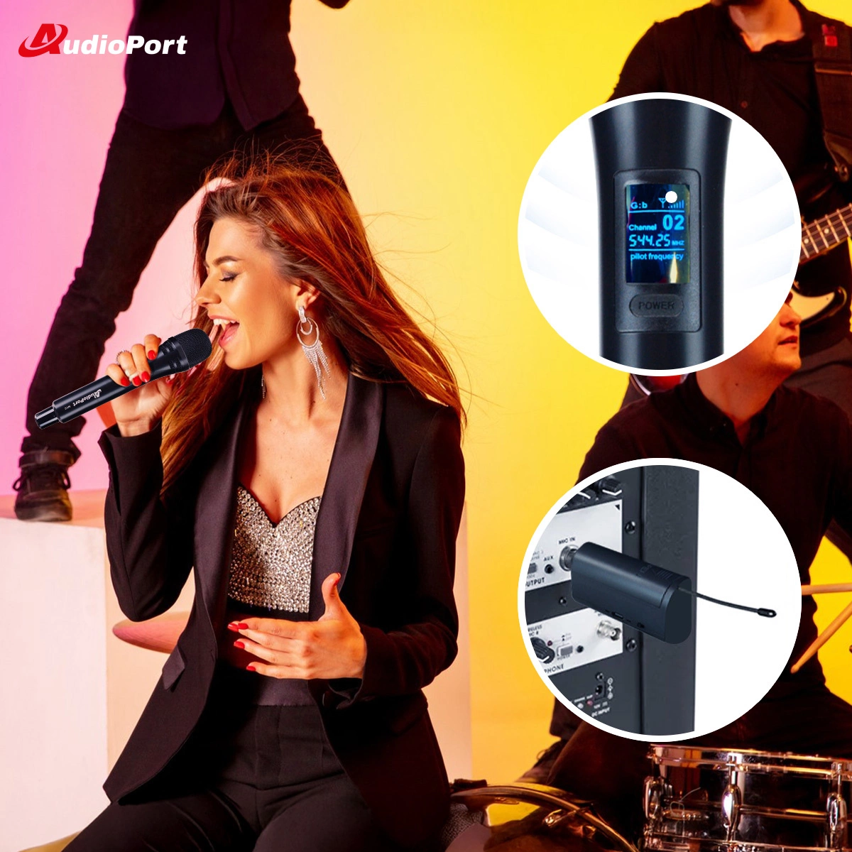 Audioport to zestaw dwóch mikrofonów bezprzewodowych UHF, zapewniający stabilną transmisję dźwięku. Jednokierunkowa charakterystyka kardioidalna skutecznie redukuje niepożądane dźwięki z otoczenia, gwarantując czystą i wyraźną jakość audio.