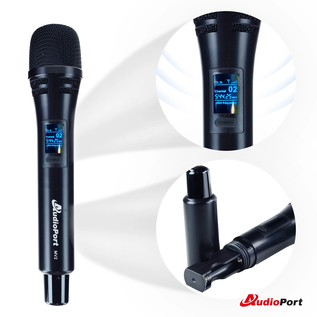 2x Mikrofon bezprzewodowy UHF doręczny+ odbiornik z baterią P&P Audioport