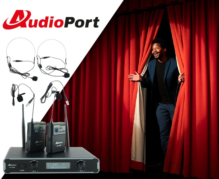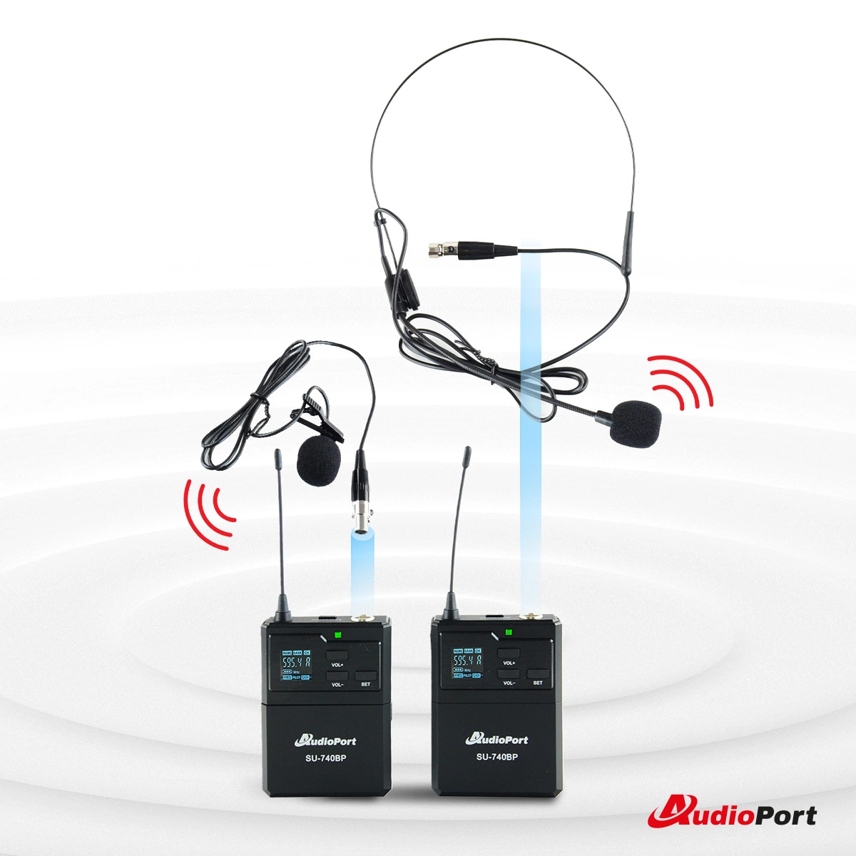 Zestaw mikrofonów bezprzewodowych UHF 2x nagłowny+ 2x krawatowy 2x bodypack+ stacja Audioport SU-740HH