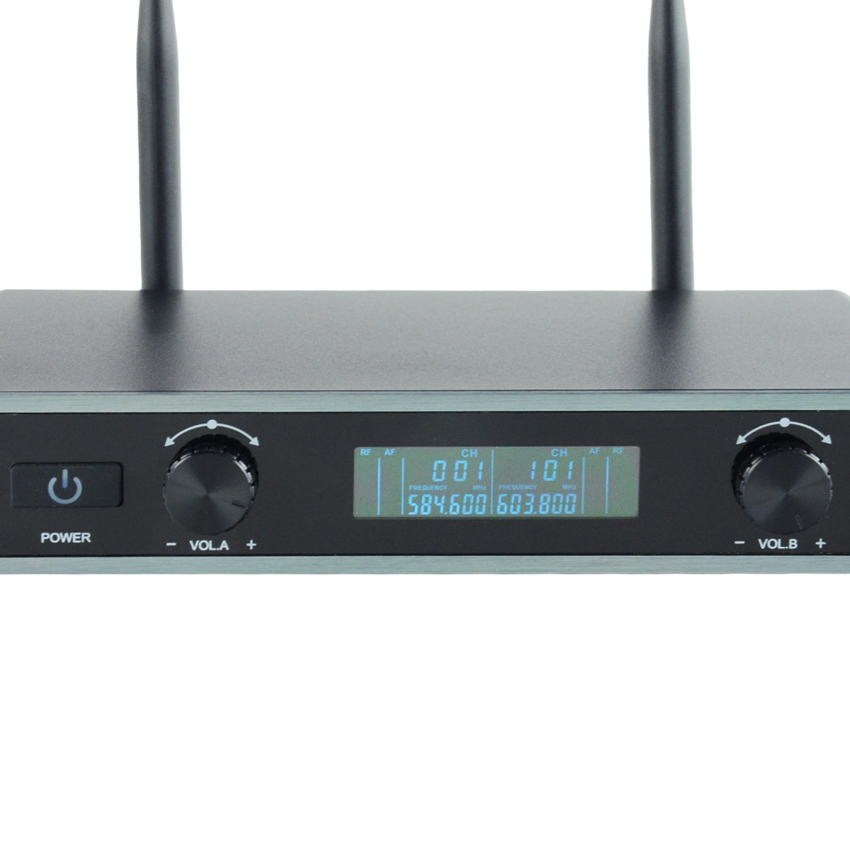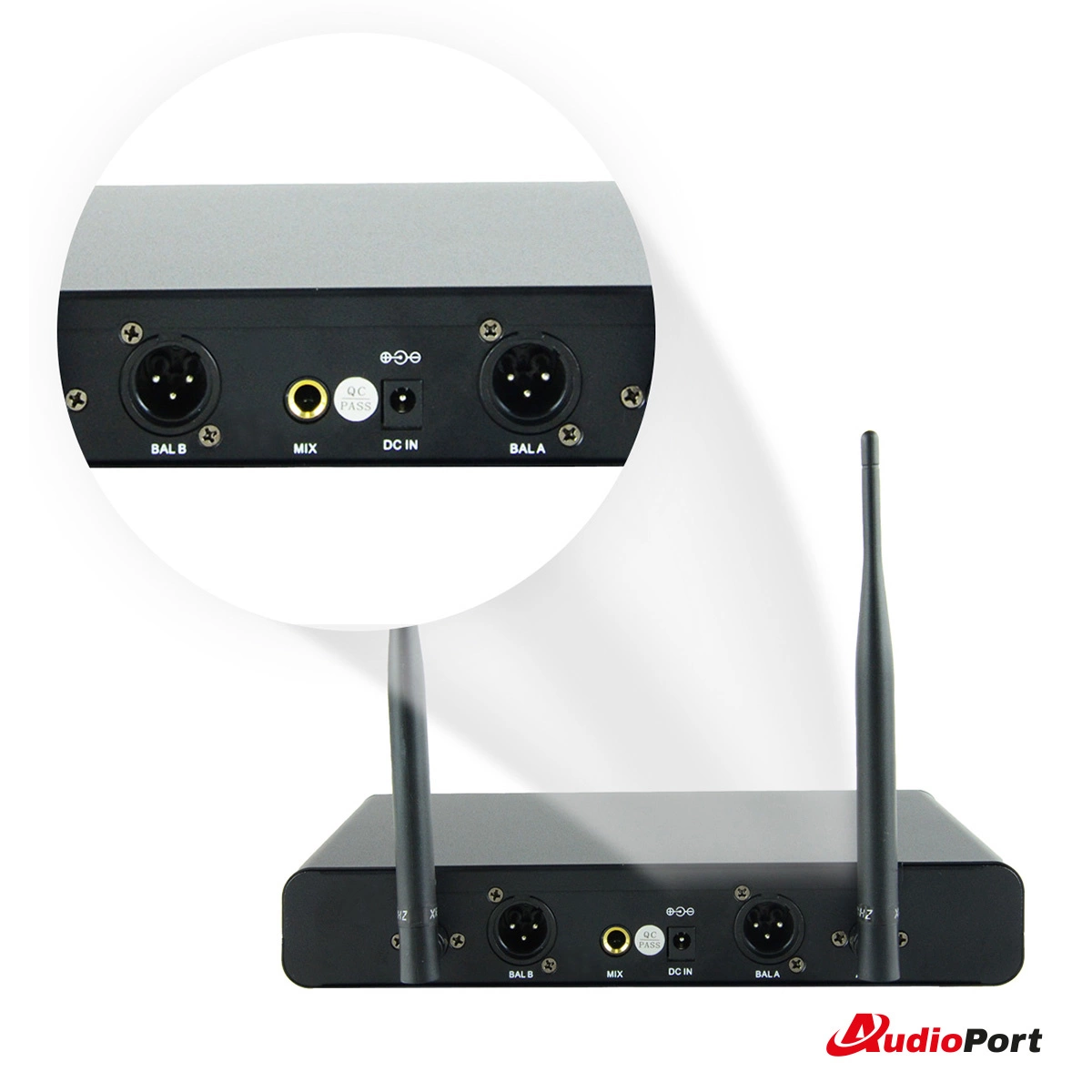 Kompletny system przeznaczony do różnych zastosowań. W zestawie znajdują się dwa nadajniki (bodypacki) z możliwością podłączenia mikrofonów nagłownych lub krawatowych, dzięki czemu zestaw oferuje dużą elastyczność w użytkowaniu. Urządzenie pracuje w paśmie UHF, co zapewnia stabilną i czystą transmisję sygnału nawet na większe odległości. Zasięg odbioru wynosi do 60 metrów, co pozwala na swobodne poruszanie się podczas wystąpień lub śpiewu.