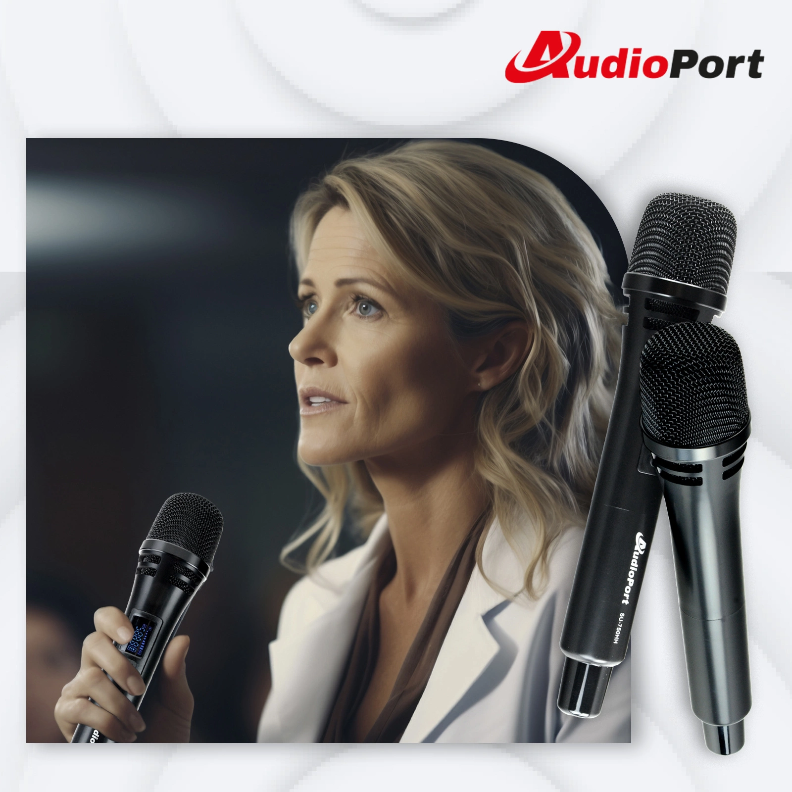 Zestaw mikrofonów bezprzewodowych 2x doręczny UHF+ stacja Audioport