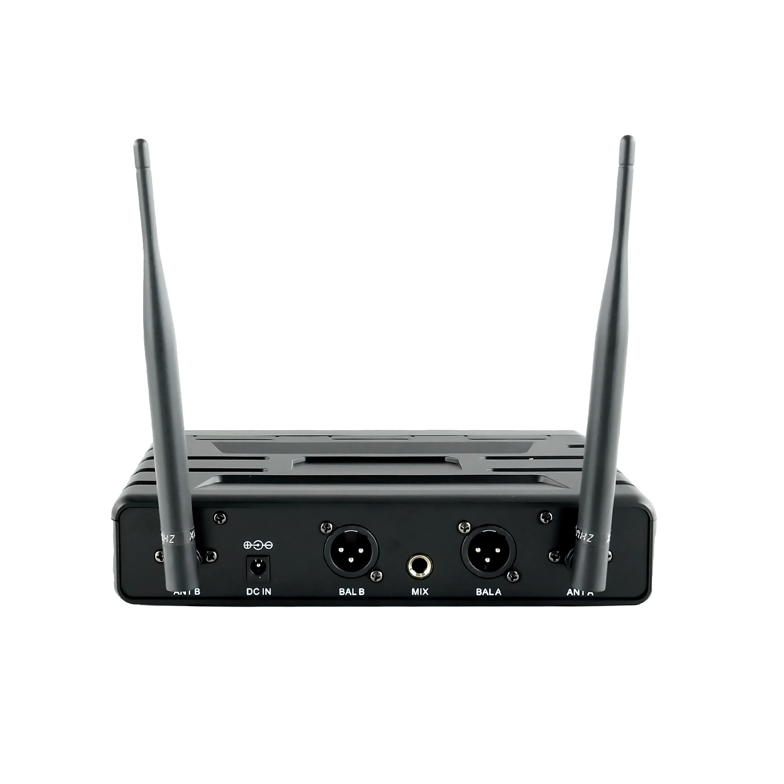 Zaawansowany system mikrofonów bezprzewodowych wyposażony w dwa mikrofony ręczne UHF, które można używać jednocześnie bez wzajemnych zakłóceń. System obsługuje 32 kanały dla każdego mikrofonu, co pozwala na łatwe przełączanie częstotliwości w przypadku rzadkich zakłóceń. Dzięki zaawansowanej technologii UHF, zestaw oferuje stabilny i czysty transfer dźwięku nawet w trudnych warunkach.