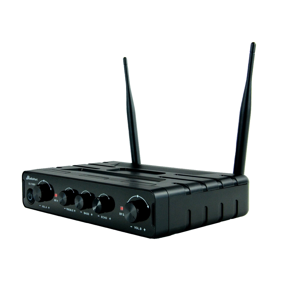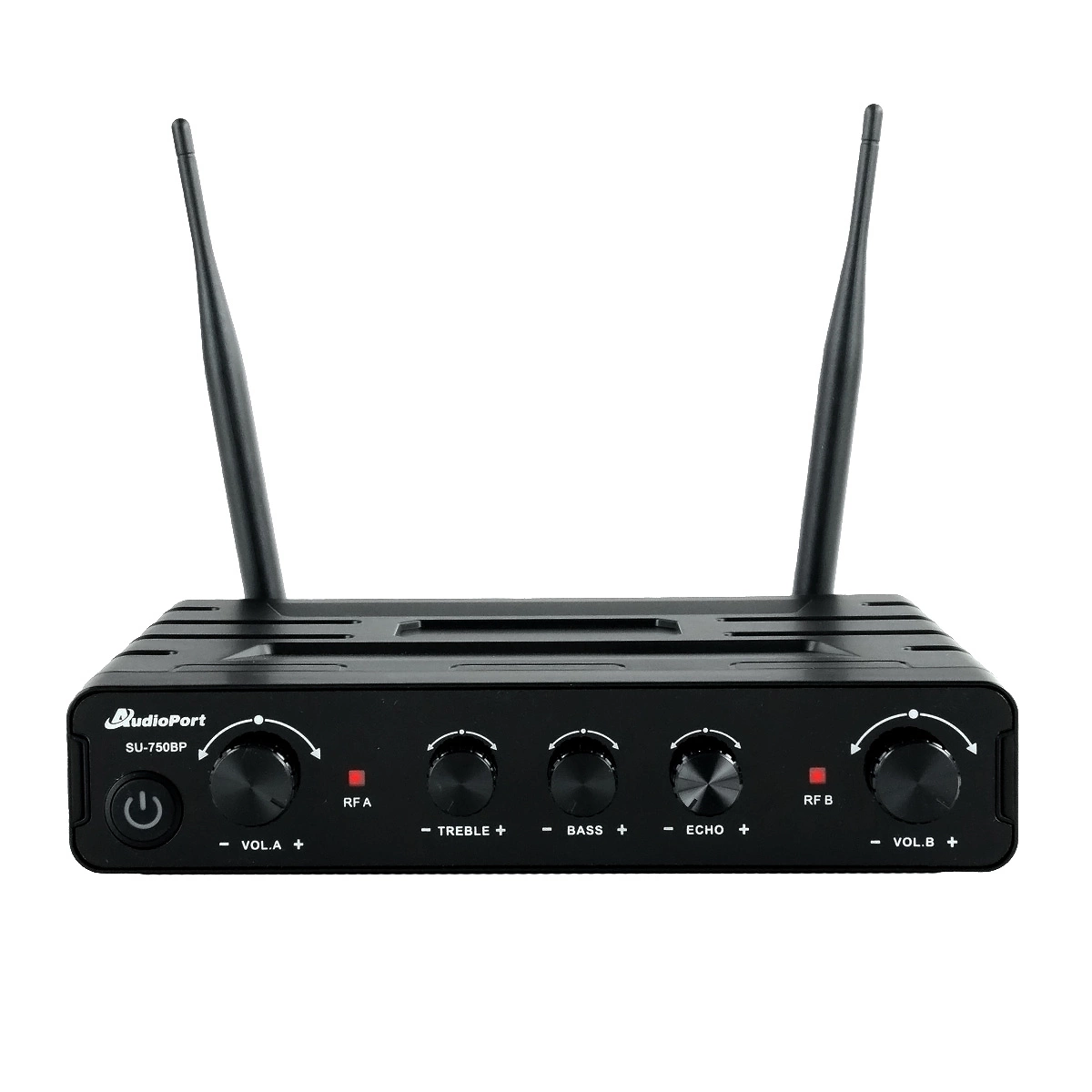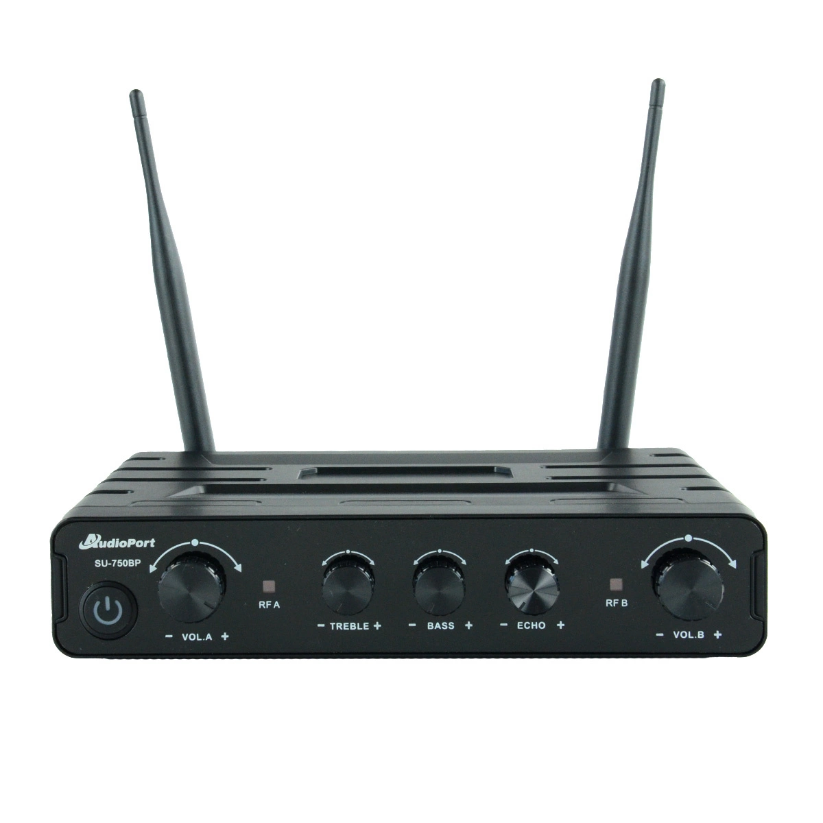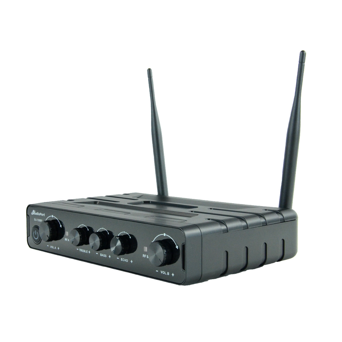 - W zestawie: 2x mikrofon nagłowny UHF, 2x bodypack, 2x krawatowy, stacja, kabel jack 6,3mm, zasilacz, 4x bateria R6 1,5V,