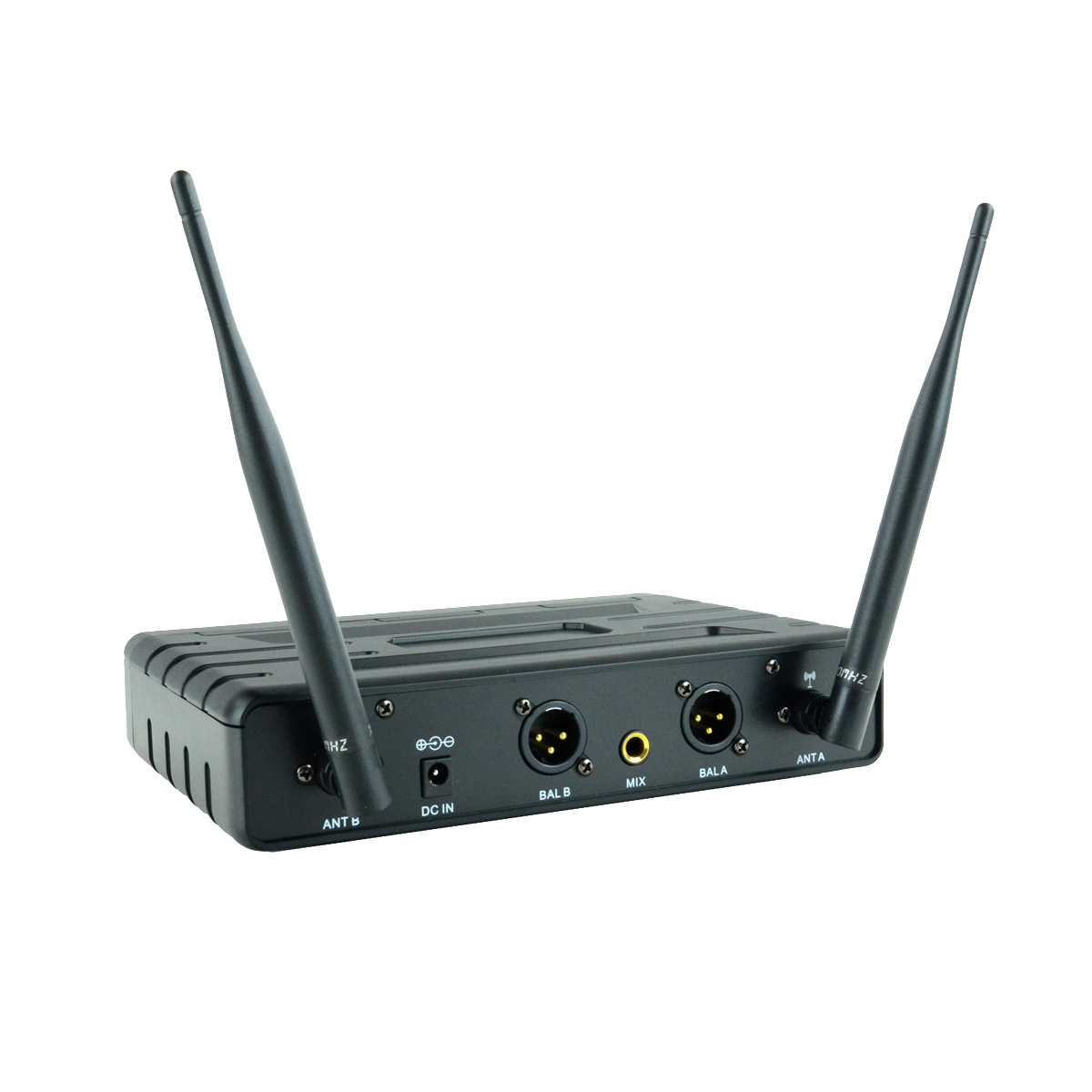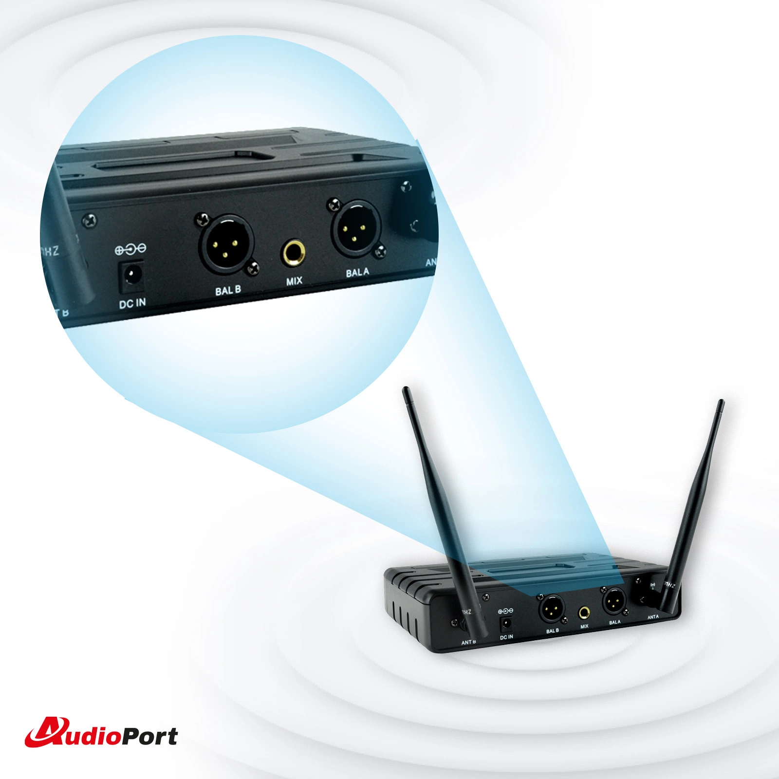 Zestaw zawiera dwa nadajniki bodypack (zasilanie 2 baterie R6 1,5V ) z możliwością podłączenia mikrofonów nagłownych (podłączenie poprzez mini XLR) lub krawatowych (podłączenie poprzez mini XLR). Dzięki zaawansowanej technologii UHF i aż 32 kanałom dla każdego nadajnika, system zapewnia stabilny transfer dźwięku bez zakłóceń, nawet w wymagających warunkach pracy.