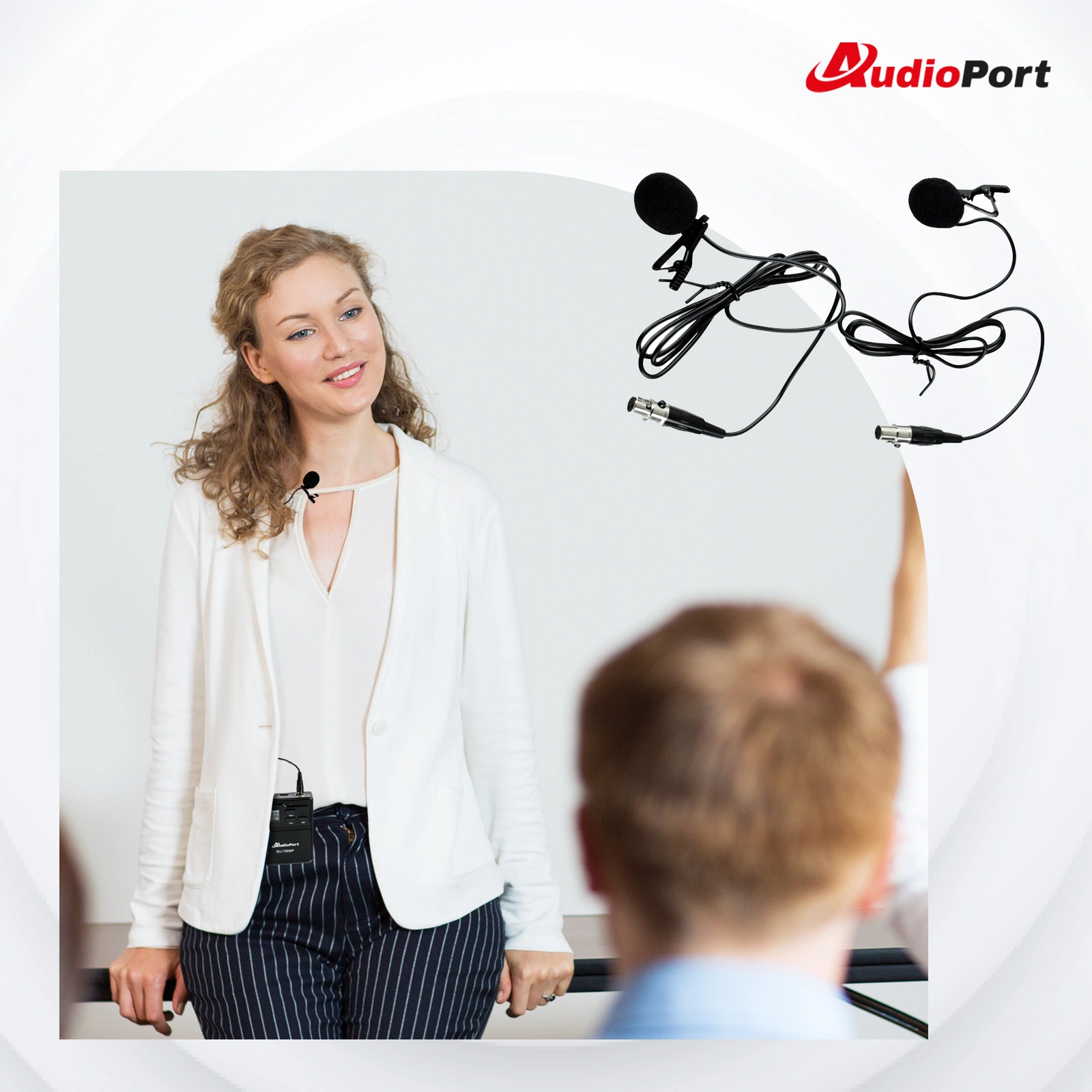 2x Mikrofon nagłowny UHF 2x bodypack 2x krawatowy+ stacja zestaw Audioport