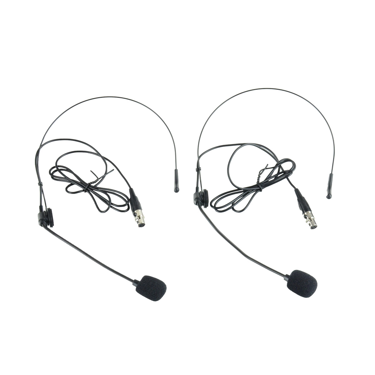 - Zestaw mikrofonów nagłownych UHF, 2x bodypack, 2x na klip+ stacja