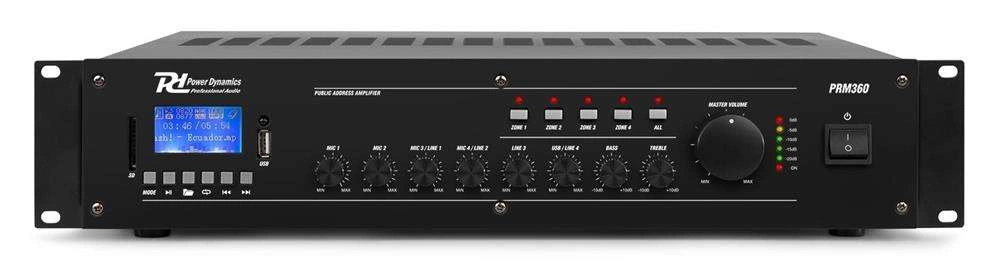 - 1 x Power Dynamics PRM360 wzmacniacz z mikserem