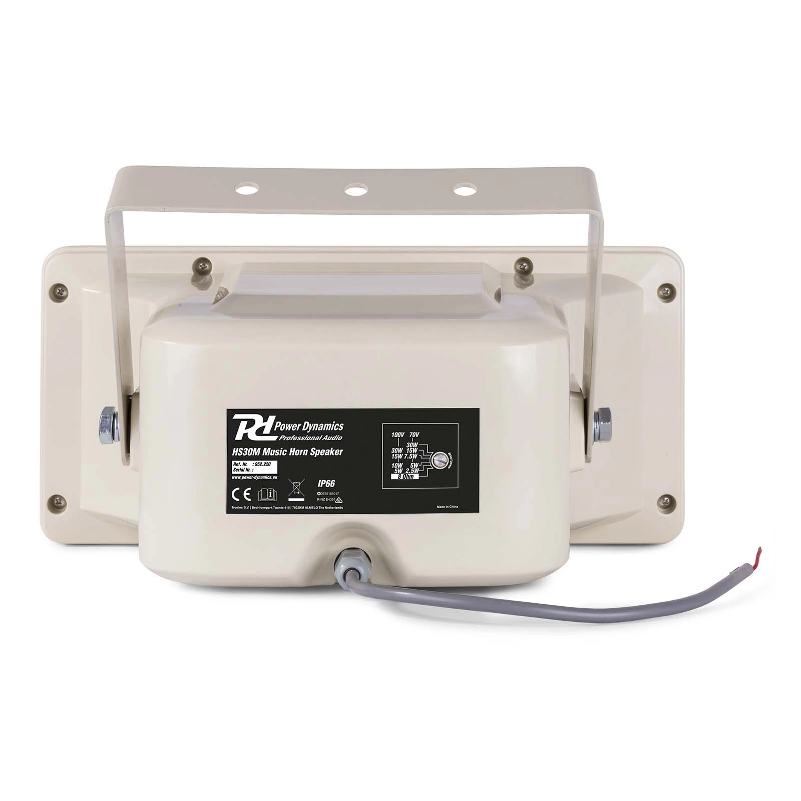 Model HS30M charakteryzuje się wodoodporną obudową ABS z IP66, możemy więc stosować go w miejscach o wysokim stężeniu pyłów, kurzu, wilgoci, itp, ale również w instalacjach zewnętrznych: na boiskach, placach, lodowiskach, itp. Tuba została tak wyprofilowana, że zapewnia bardzo dobrej jakości dźwięk zwłaszcza na większych odległościach.