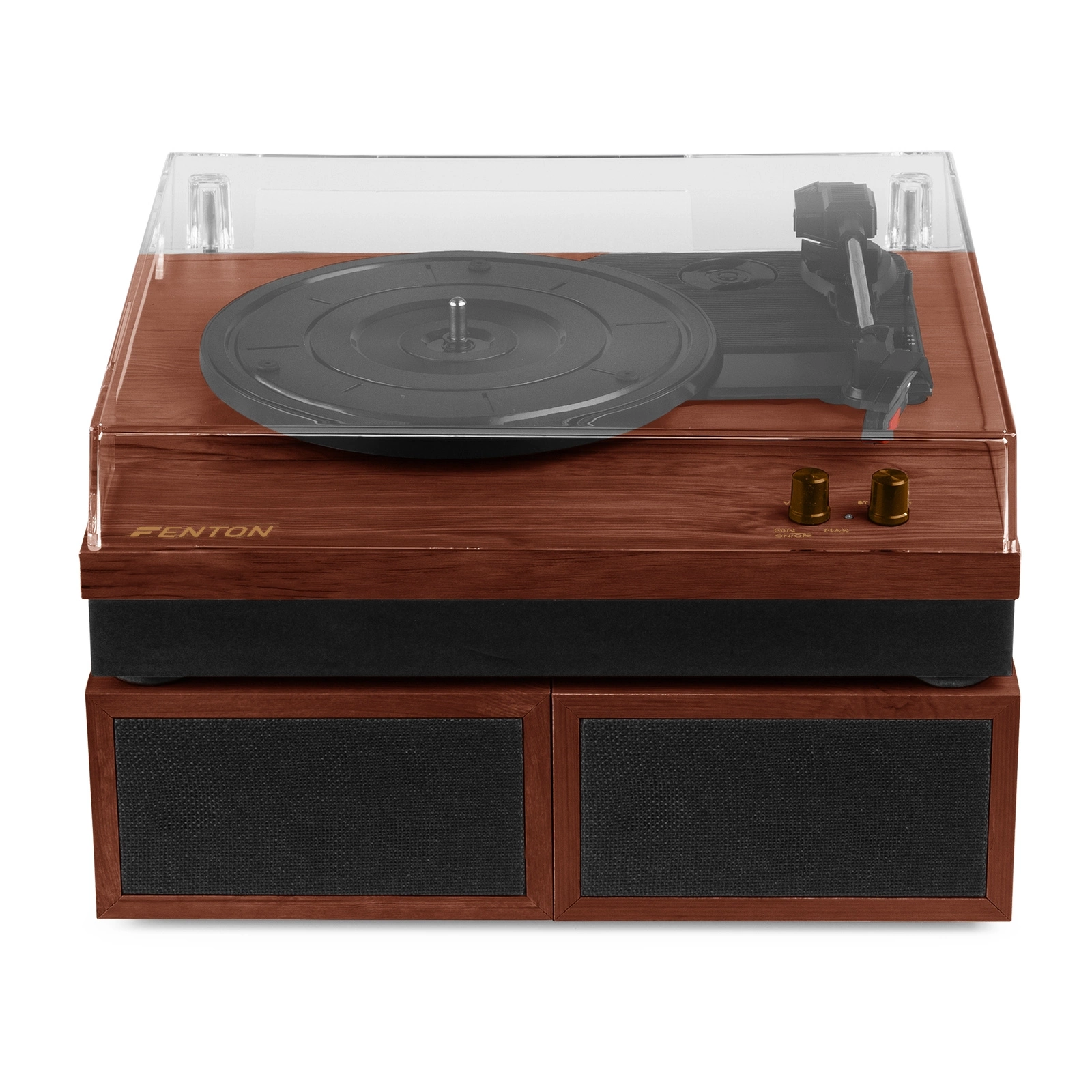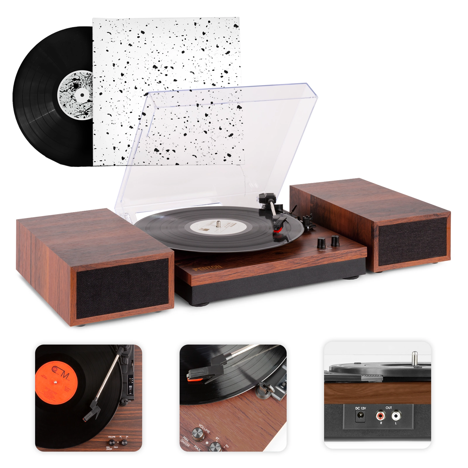 Fenton RP165C jest wyposażony we wbudowany wzmacniacz o mocy maks. 100W. Oba głośniki można szybko i łatwo podłączyć za pomocą prostej wtyczki, dzięki czemu cały zestaw jest gotowy do użycia w mgnieniu oka. Daje to również korzyści, jeśli chcesz użyć zestawu w innym miejscu. Za pomocą kilku czynności możesz szybko i łatwo zainstalować zestaw gdzie tylko chcesz. W dowolnym momencie wybierz lokalizację głośników: po bokach lub pod gramofonem... Nie jesteś już ograniczony.
