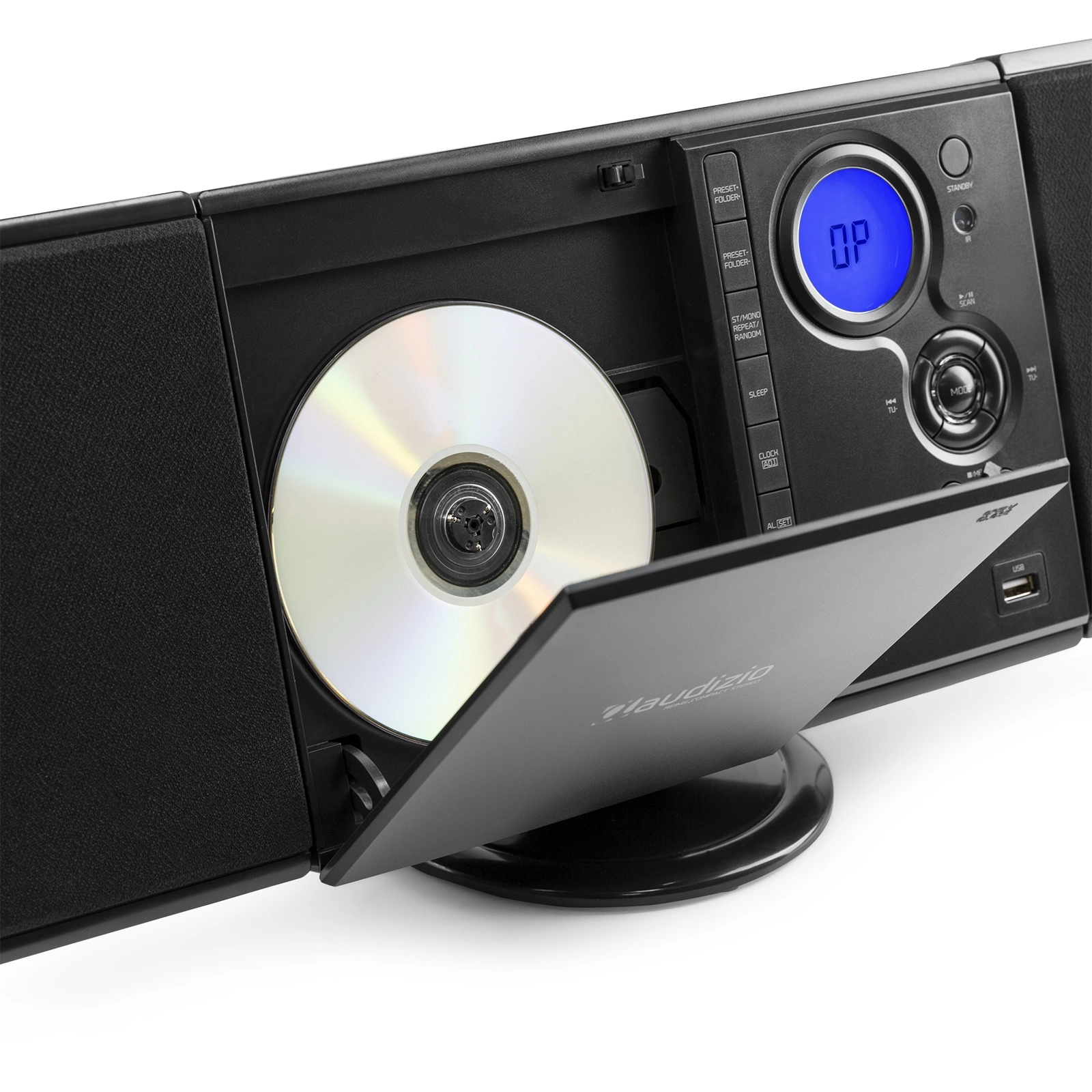 - Pionowy stereofoniczny system HiFi z USB i odtwarzaczem CD