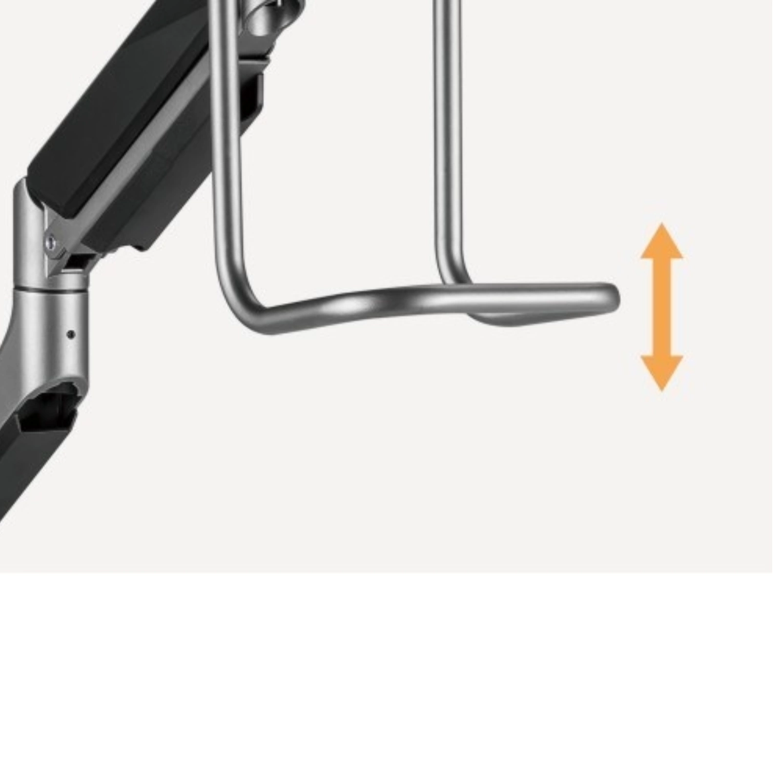 Audizio MAD20F to ramię monitora na 2 ekrany. Ramię monitora składa się z 2-częściowego ruchomego i obrotowego ramienia z wbudowaną sprężyną gazową w górnym ramieniu, za pomocą której można łatwo regulować wysokość i położenie monitorów. Górne ramię posiada zakrzywioną poziomą szynę, do której można przymocować oba monitory. Mocowanie to odbywa się za pomocą oddzielnej płyty VESA, którą można najpierw przymocować do monitorów, po czym monitory można łatwo zawiesić na szynie. Dzięki szynie zawsze możesz zawiesić swoje monitory obok siebie płynnie i na tej samej wysokości. Poręczna rączka (w komplecie, opcjonalnie montowana) umożliwia łatwą regulację wysokości. Po zamontowaniu monitory można przechylać o + lub - 10°, a nawet obracać o 180°.