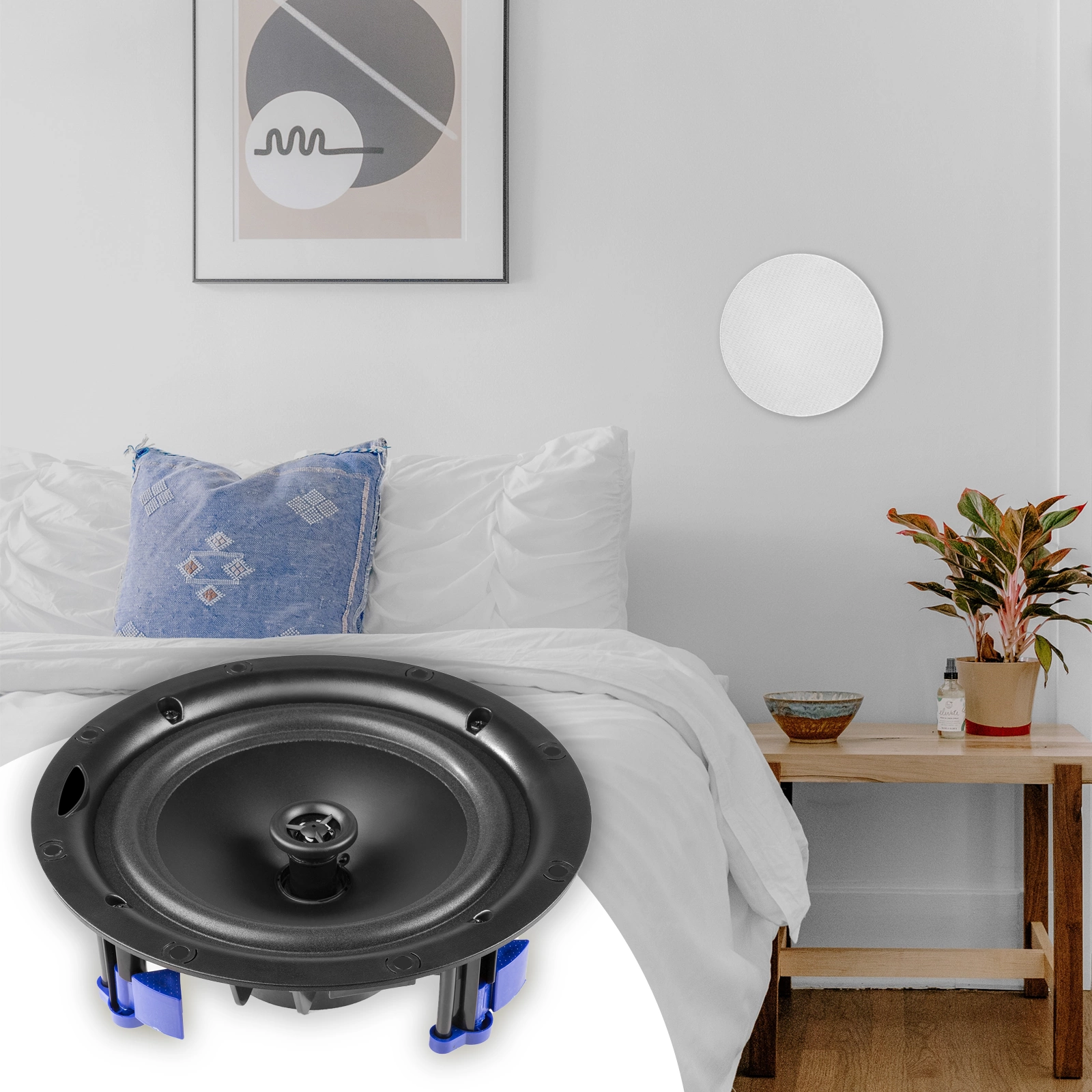 W tym bezprzewodowym głośniku sufitowym zastosowano współosiowy układ 2-drożnych przetworników z oddzielnym 6,5-calowym głośnikiem niskotonowym i półcalowym głośnikiem wysokotonowym. Wbudowana zwrotnica skutecznie rozdziela zakres częstotliwości dowolnego dźwięku między te dwa przetworniki, co zapewnia szeroką częstotliwość zasięg i precyzyjna reprodukcja dźwięku.