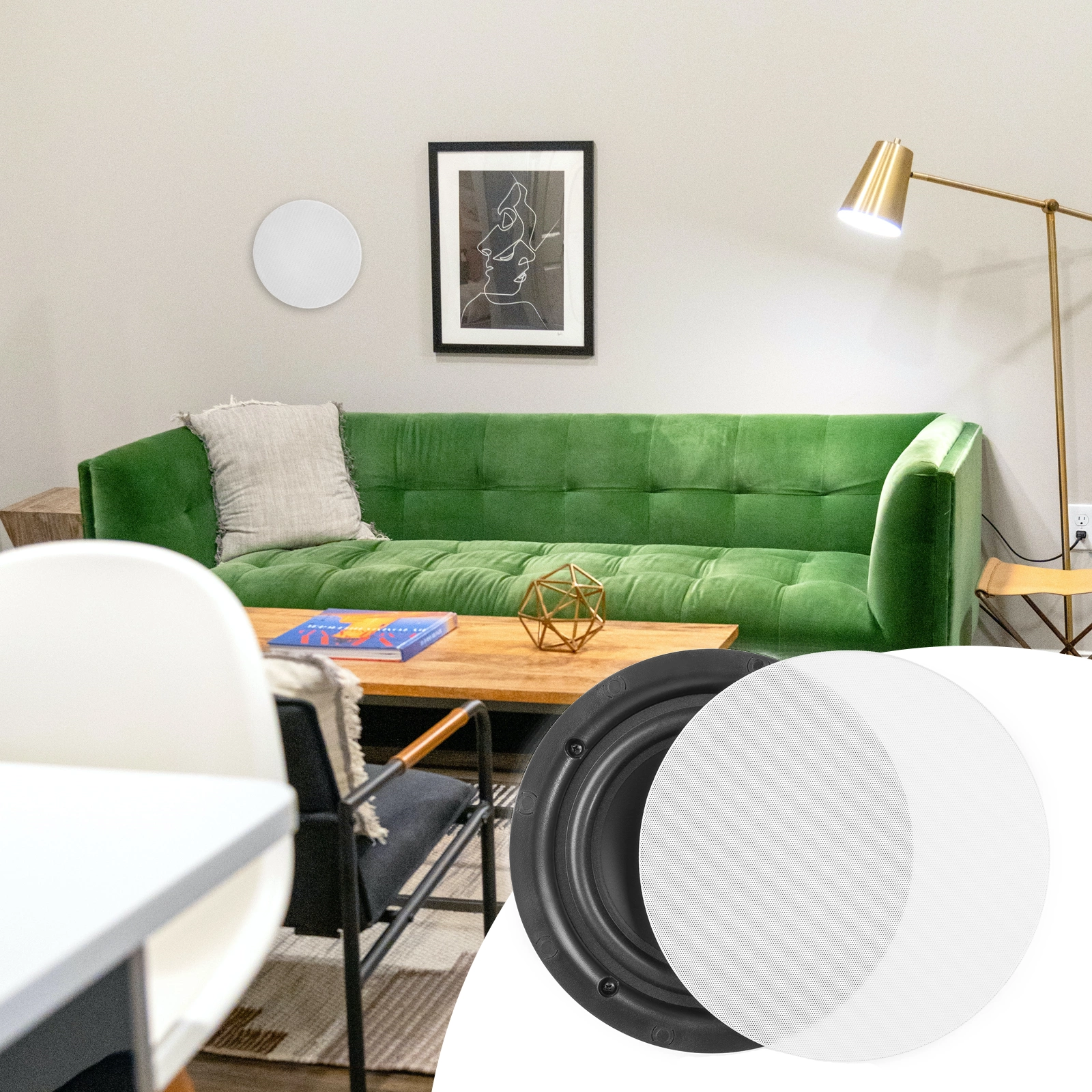 Kratka tego głośnika sufitowego jest magnetycznie przymocowana do głównej obudowy, dzięki czemu jest niezwykle łatwa do usunięcia w celu dostosowania, na przykład do lepszego dopasowania do określonego pomieszczenia. Kratka ma bezramkową konstrukcję z eleganckim białym wykończeniem, dzięki czemu pasuje do sufitu każdego pomieszczenia.