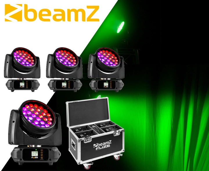 Zestaw 4x Głowa ruchoma RGBWA-UV zoom DMX + case
