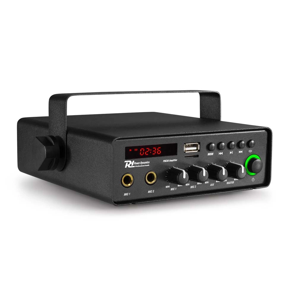 Zewnętrzny system muzyczny Power Dynamics ze wzmacniaczem PDC30 i dwoma głośnikami. Wzmacniacz został zaprojektowany jako przenośny i może być używany z akumulatorem 12 V w samochodzie, jak również do stałych konfiguracji. Oferuje różne wejścia do odtwarzania muzyki lub komunikatów publicznych za pośrednictwem odpornych na warunki atmosferyczne głośników, które mogą być używane na zewnątrz. Ten system jest idealny do odtwarzania muzyki i przekazywania komunikatów z samochodu, ponieważ głośniki oferują dobrze zbalansowany dźwięk.