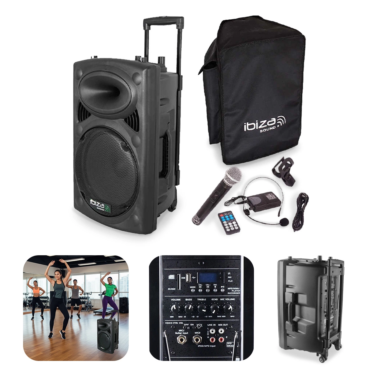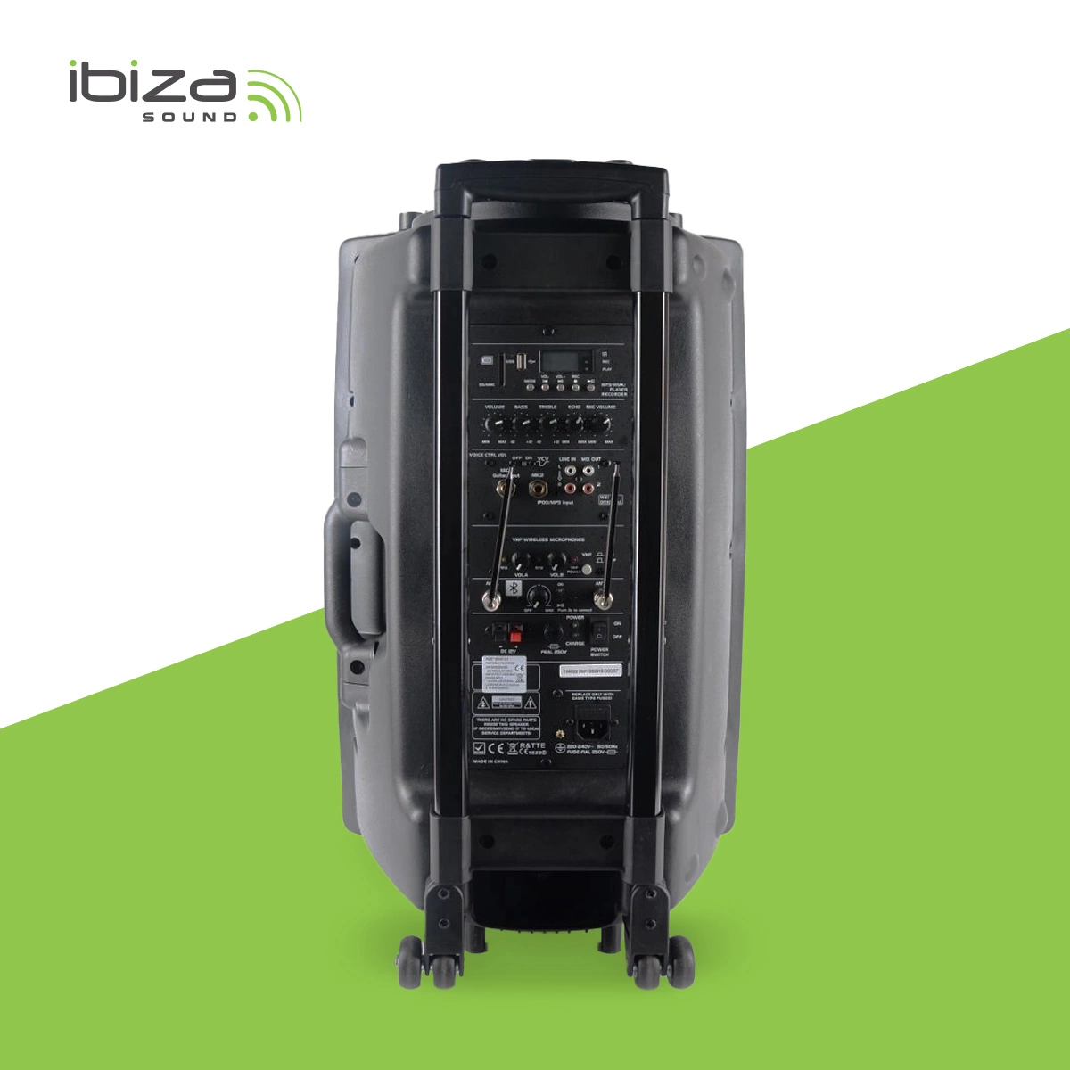 wbudowany odtwarzacz MP3 (z USB i czytnikiem kart SD), equalizer, mikser i dwa mikrofony bezprzewodowe (w tym jeden nagłowny) z wbudowaną w kolumnę bazą VHF. To samodzielny, w pełni funkcjonalny system nagłośnieniowy - idealny w zastosowaniach mobilnych, dzięki wbudowanemu akumulatorowi wielokrotnego ładowania. Nadaje się m.in. do prowadzenia imprez karaoke. Urządzenie zbudowane jest na wydajnym głośniku niskotonowym o średnicy 15", moc szczytowa kolumny wynosi aż 800W.