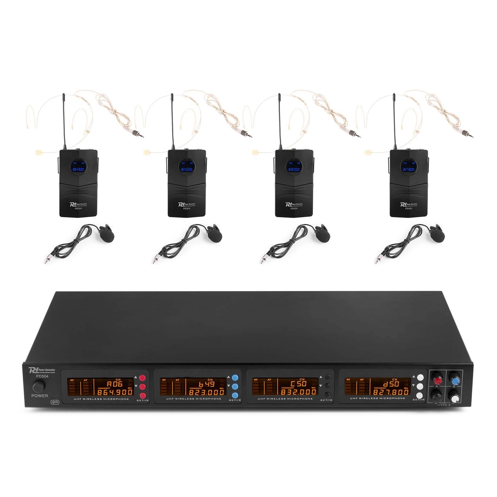 Zestaw mikrofonów bezprzewodowych UHF 4x bodypack PD504B
