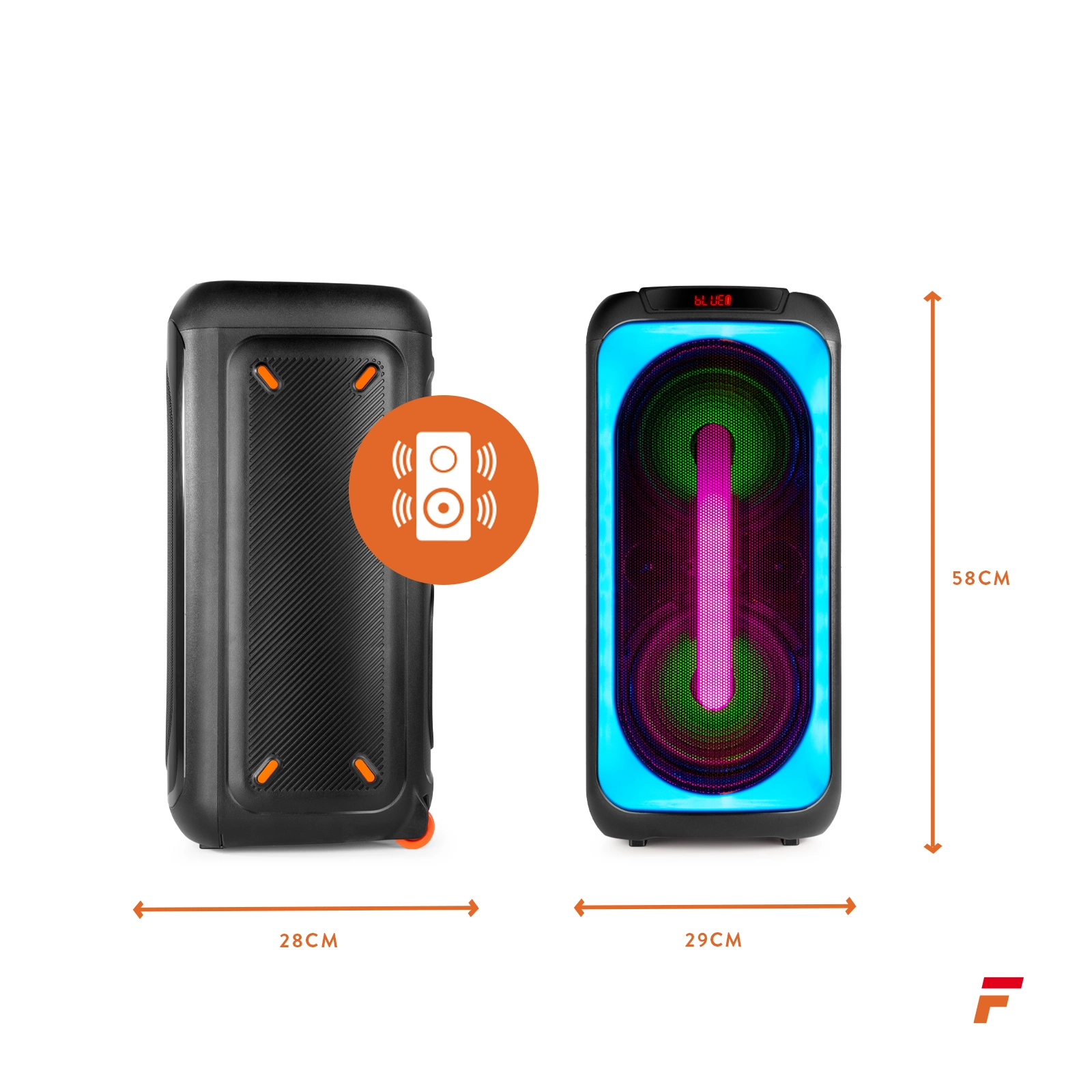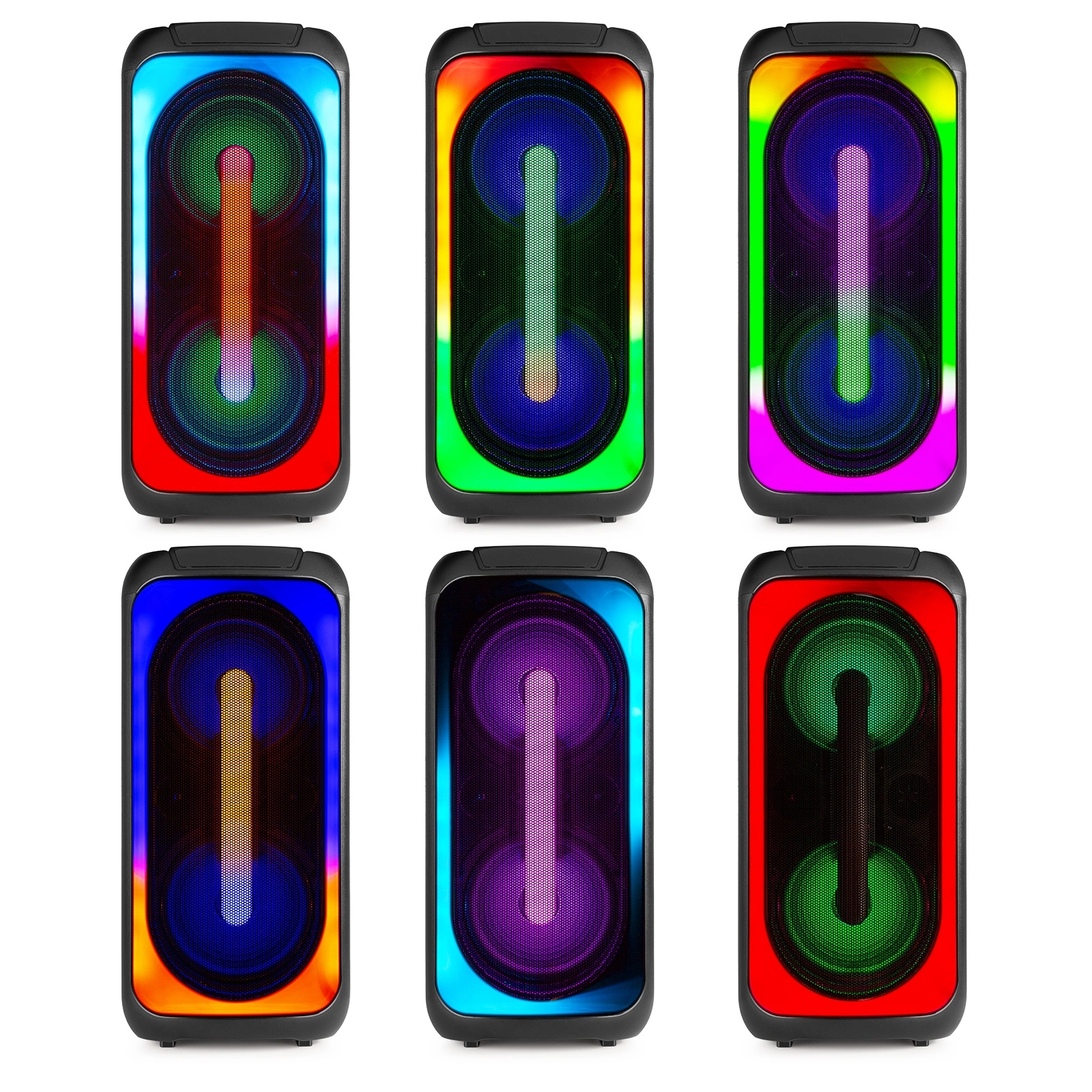 Ten potężny, bezprzewodowy głośnik imprezowy z efektem świetlnym LED zapewni niesamowitą atmosferę i mocne brzmienie, gdziekolwiek jesteś. Zsynchronizowane z rytmem światła LED na froncie rozkręcą każdą zabawę — od domówki po karaoke w plenerze.