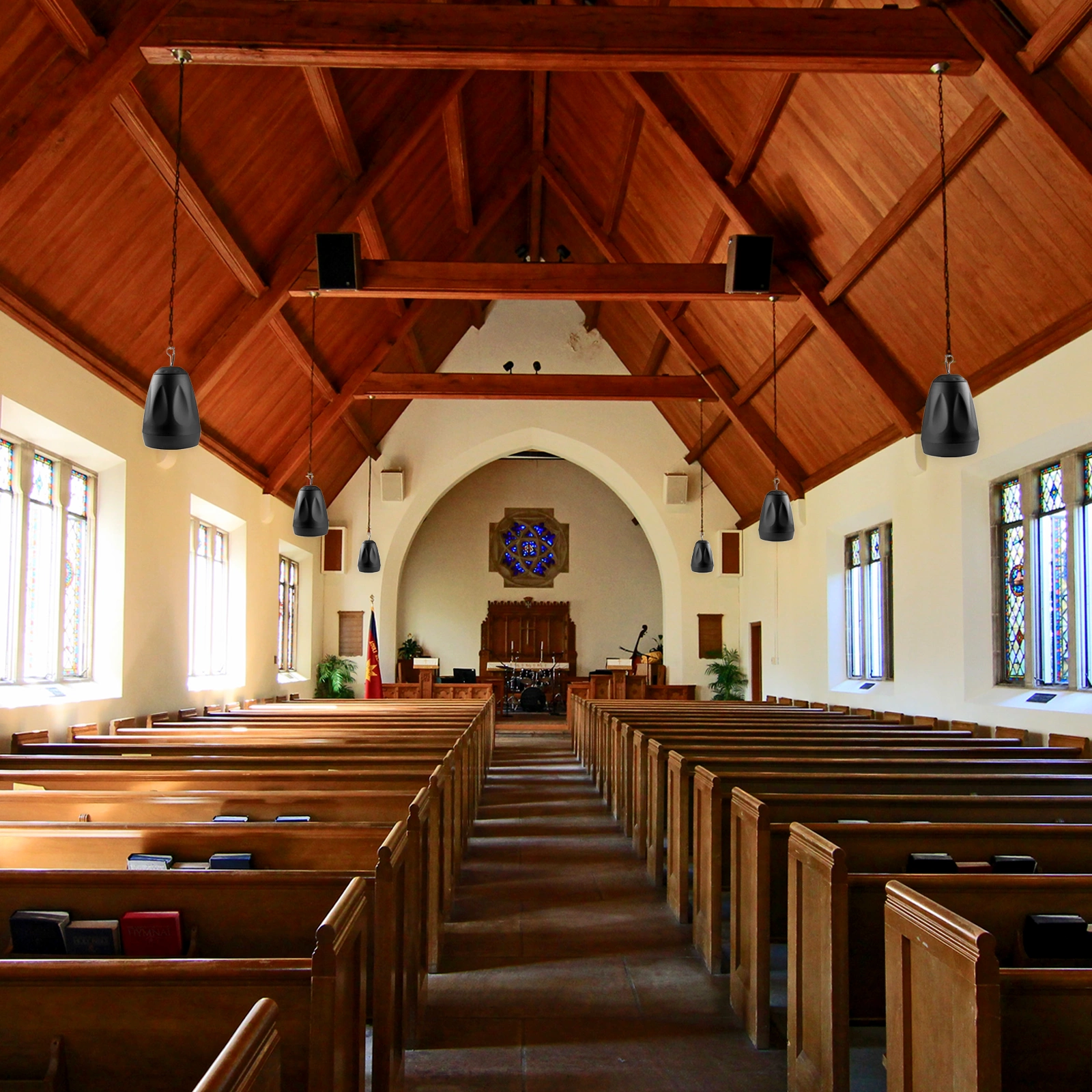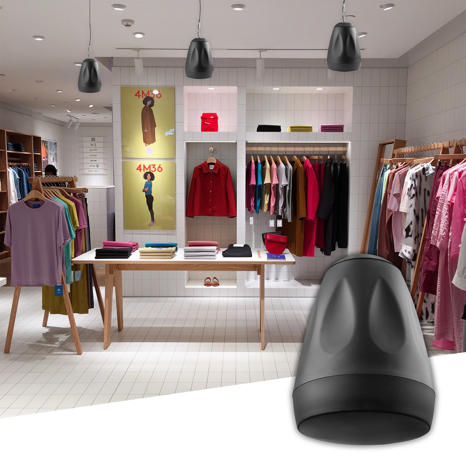 Głośnik 100V można zamontować na ścianie lub suficie, ale można go również pozostawić wiszący. To idealne rozwiązanie, zwłaszcza gdy musisz zastosować obie opcje, bo przestrzeń nie pozwala na inne rozwiązanie. Wszędzie trzymasz ten sam głośnik i nadal masz możliwość zainstalowania głośników w żądany sposób.