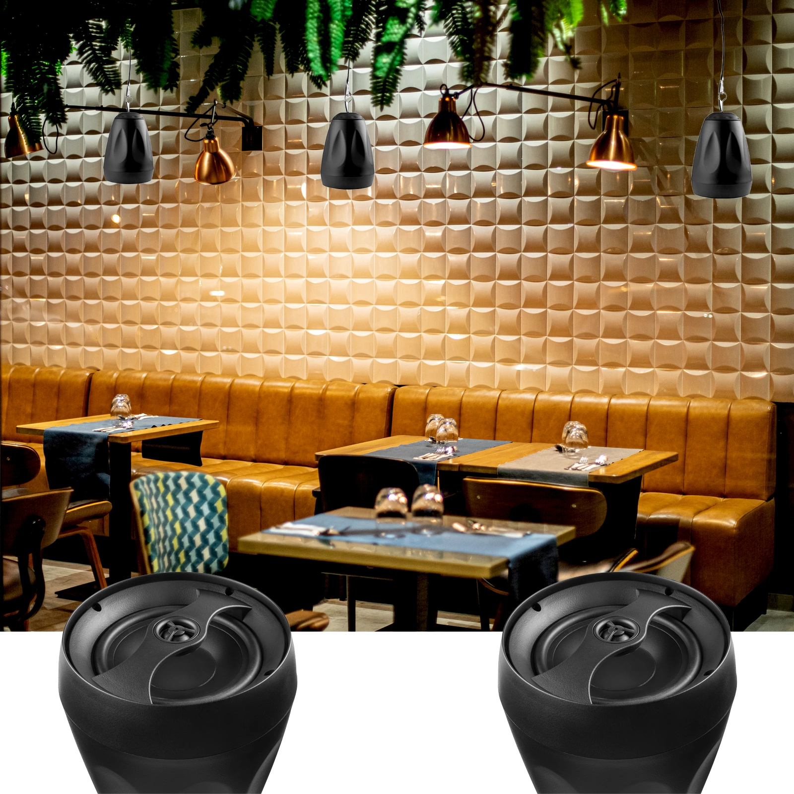 Wewnętrzne/zewnętrzne wiszące głośniki PDS65 są przeznaczone do instalacji podwieszanych na suficie. Te stylowe wielofunkcyjne głośniki mają dwudrożną konstrukcję współosiową, w komplecie z 6,5-calowym głośnikiem niskotonowym i 1-calowym głośnikiem wysokotonowym. Obejmują one również transformator liniowy 70/100V z pięcioma odczepami mocy oraz opcję pracy z niską impedancją (8Ohm). Doskonałe pasmo przenoszenia i moc wyjściowa są idealne do odtwarzania muzyki w tle w sklepach, restauracjach, barach, biurach i obiektach użytkowych. PDS65 jest dostarczany w komplecie z zestawem do zawieszenia o długości 3 m, uchwytem ściennym i innym sprzętem montażowym.