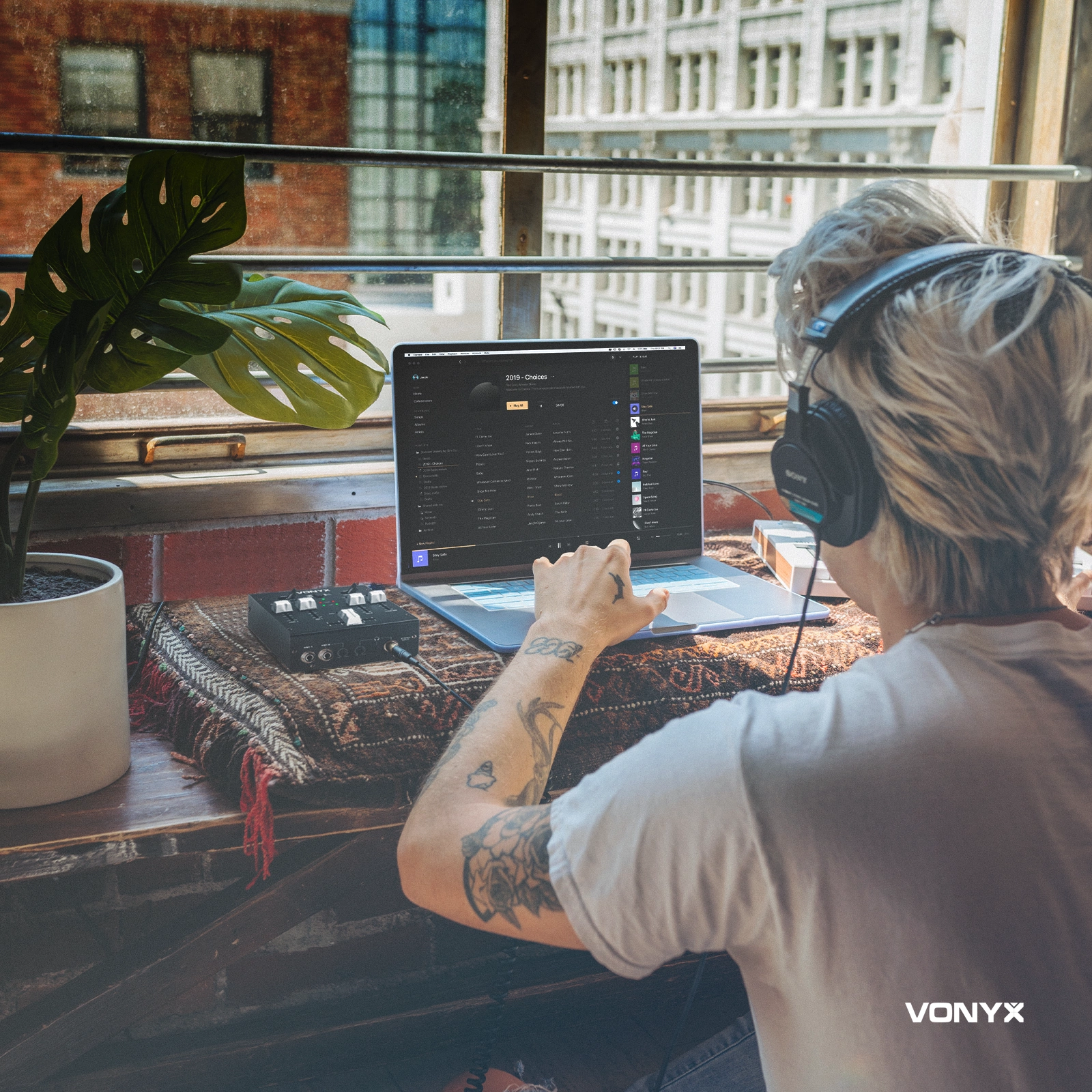 Mikser Vonyx VDJ2USB wyposażony jest w pełny interfejs audio USB typu full-duplex – umożliwia jednoczesne nagrywanie i odtwarzanie dźwięku. Po podłączeniu do komputera lub laptopa przez kabel USB, mikser jest automatycznie wykrywany jako zewnętrzna karta dźwiękowa (Plug & Play – bez sterowników).