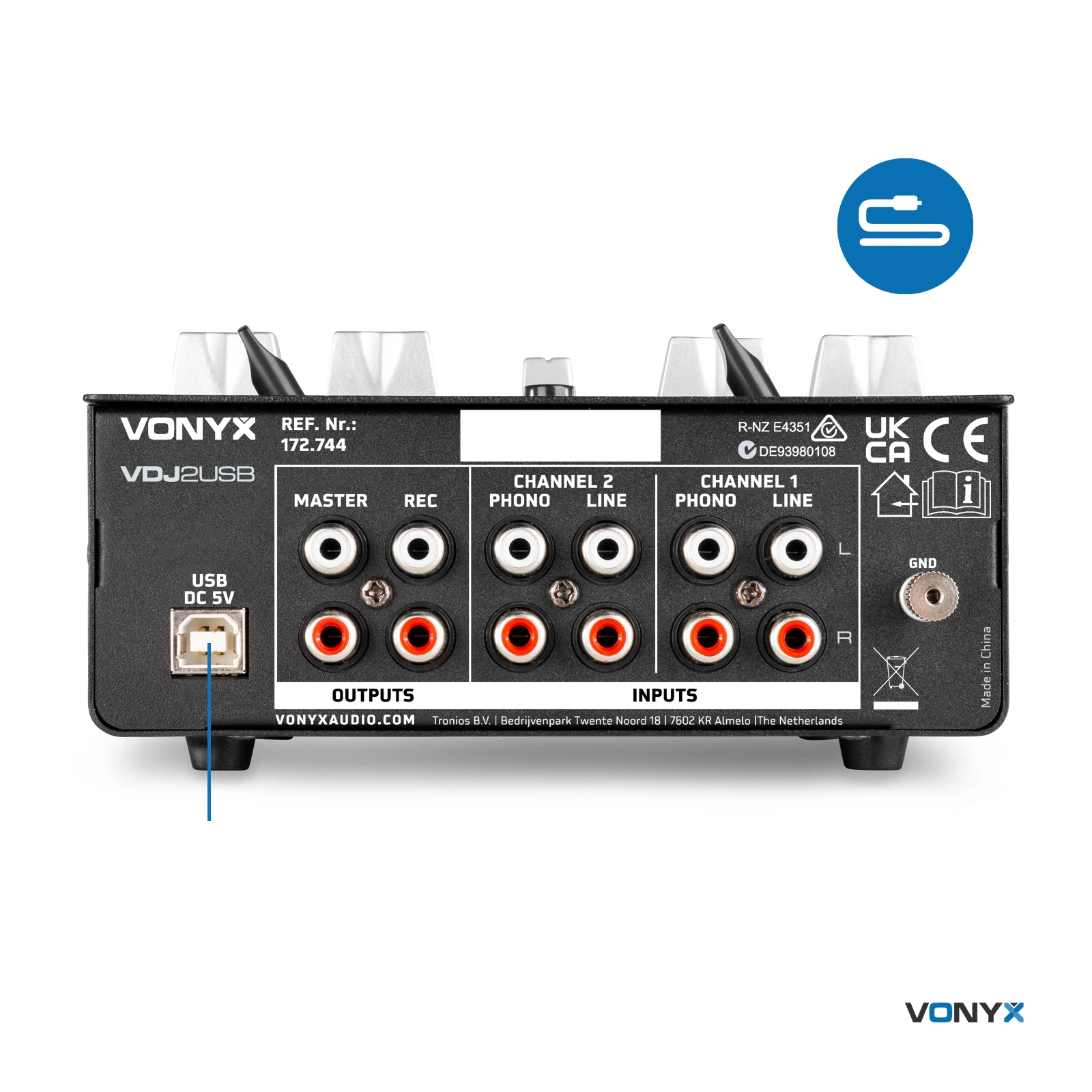 Vonyx VDJ2USB to doskonały wybór dla osób rozpoczynających przygodę z miksowaniem dźwięku oraz dla domowych użytkowników audio.