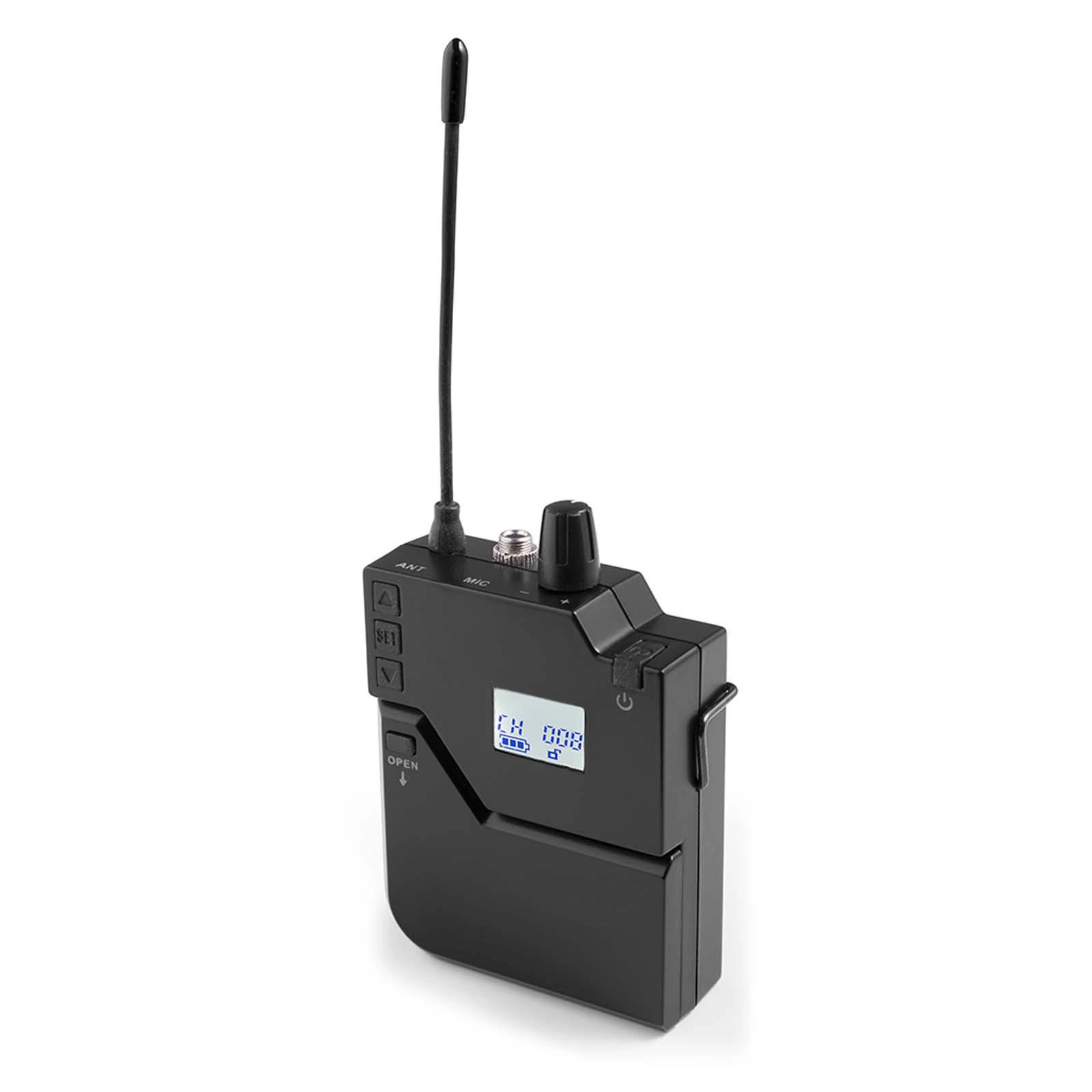 zestaw zapewnia doskonałą transmisję dźwięku. Odbiornik wyposażony został w wyświetlacz LCD, regulację głośności oraz wejście XLR. Do urządzenia dołączono bezprzewodowy mikrofon doręczny oraz bodypack z mikrofonem krawatowym i nagłownym, co umożliwia wygodne korzystanie z zestawu niezależnie od okoliczności (np. na konferencji, prezentacji, treningu).