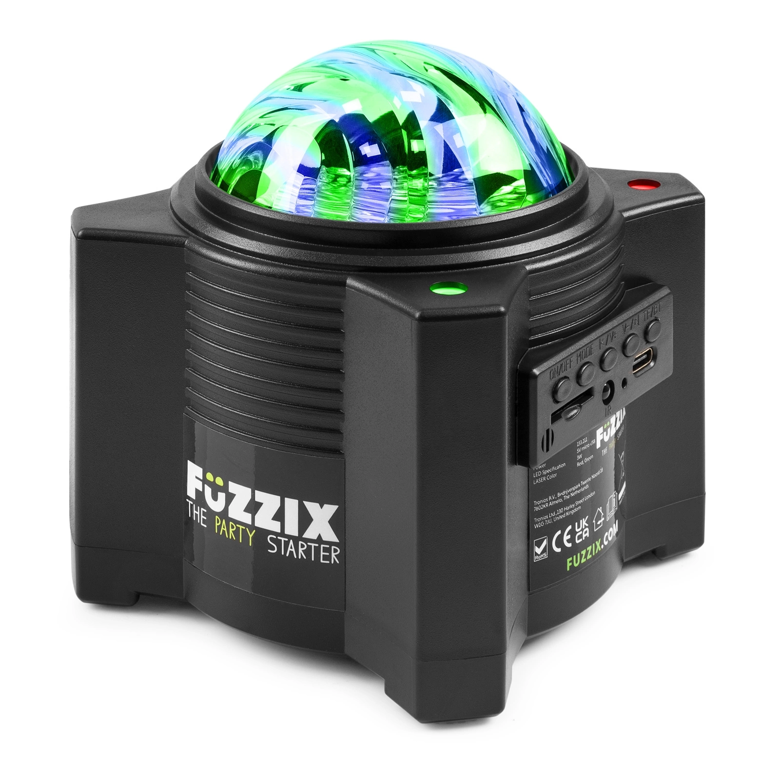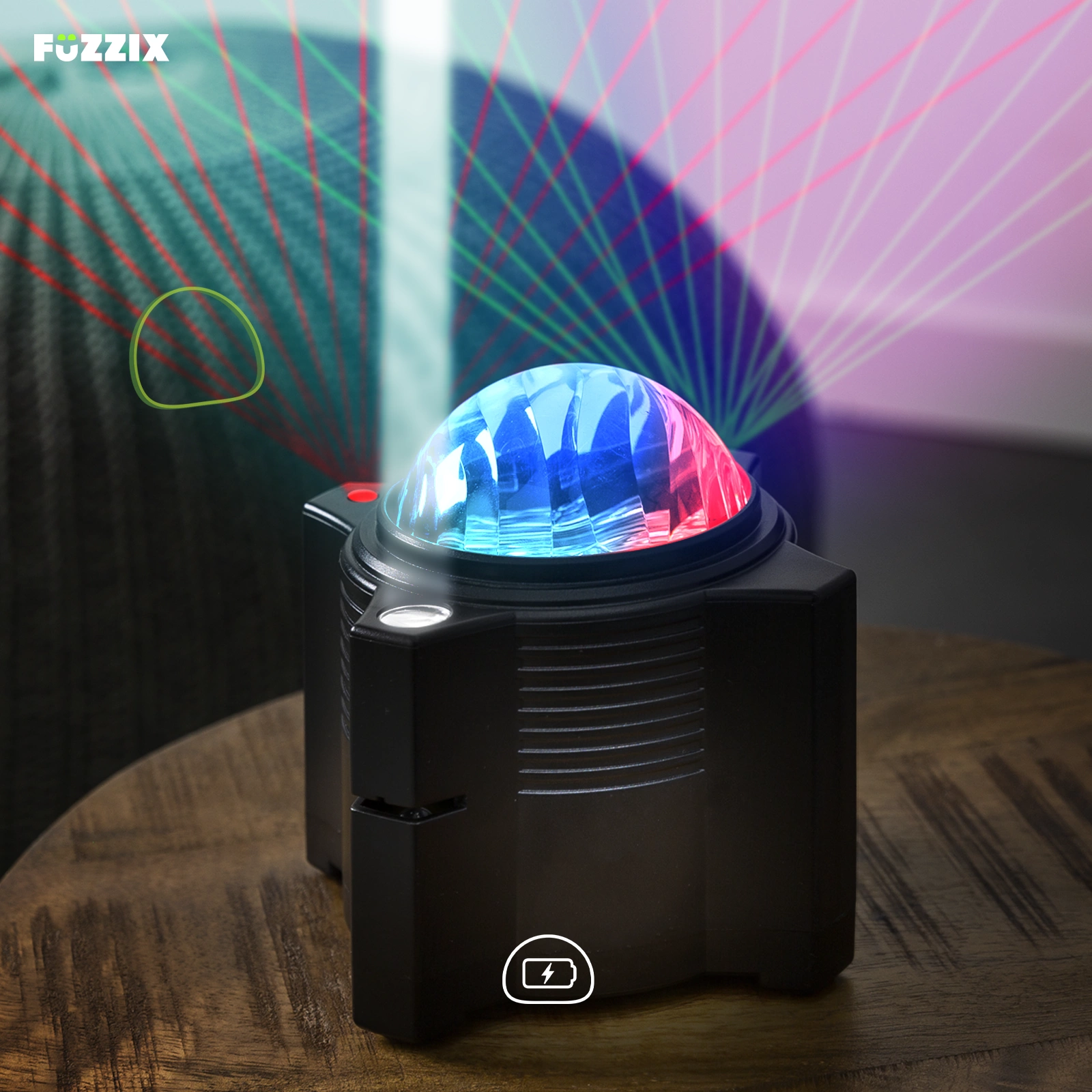 Projektor rozgwieżdżonego nieba zapewnia super fajny efekt galaktyczny w każdym pomieszczeniu w domu. Diody LED tworzą kolorowe fale, które poruszają się po całym pomieszczeniu. Biała dioda LED w połączeniu z jednym z 15 slajdów zapewnia projekcję np. księżyca lub astronauty. Lasery dopełniają efekt stosami czerwonych i zielonych wiązek, tworząc prawdziwy wszechświat. Za pomocą dołączonego pilota zdalnego sterowania projektor jest łatwy w obsłudze, a wbudowany głośnik Bluetooth uzupełnia go o efekt dźwiękowy ulubionej muzyki. Dzięki wbudowanemu akumulatorowi możesz go używać wszędzie, ogranicza Cię tylko wyobraźnia.