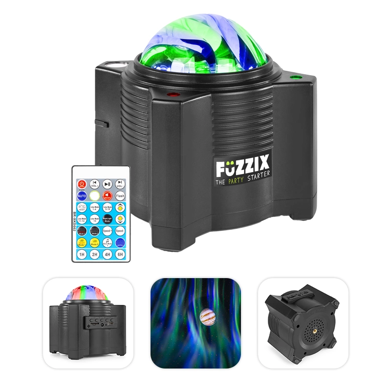 Atmosfera pięknego efektu gwiaździstego nieba staje się jeszcze lepsza, gdy masz do niego muzykę. Projektor galaktyczny Aurora ma wbudowany głośnik Bluetooth, dzięki czemu możesz bezprzewodowo przesyłać muzykę z telefonu lub tabletu. Możesz także odtwarzać muzykę MP3 z karty micro SD za pomocą wbudowanego odtwarzacza MP3. Oczywiście możesz także sterować odtwarzaczem MP3 i głośnością za pomocą pilota.