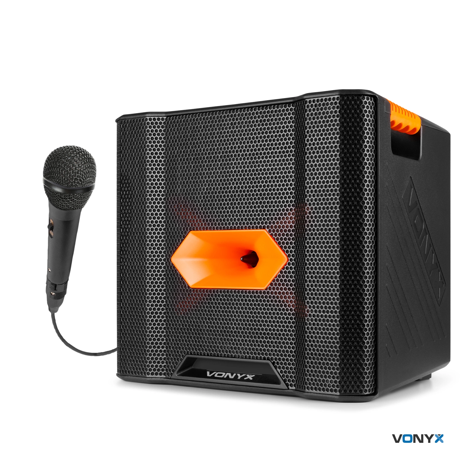 Jak sprawić, by dobra impreza była jeszcze przyjemniejsza? Po prostu wyjmij dołączony mikrofon podczas imprezy i gwarantowany sukces! Nie umiesz śpiewać? Nie ma problemu! Regulowane efekty echa i pogłosu zapewniają, że wszelkie fałszywe nuty nadal zyskują profesjonalną przewagę. Możesz użyć także jednego z 4 różnych zmieniaczy głosu.