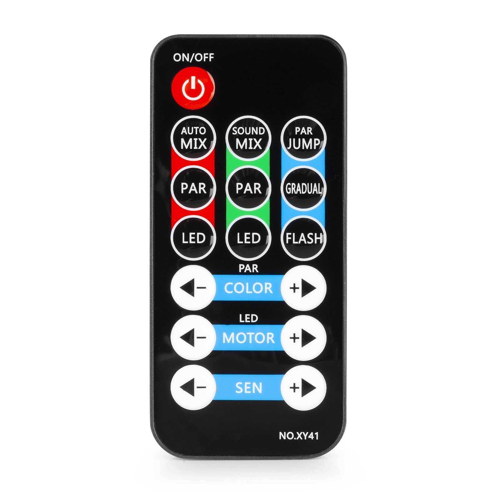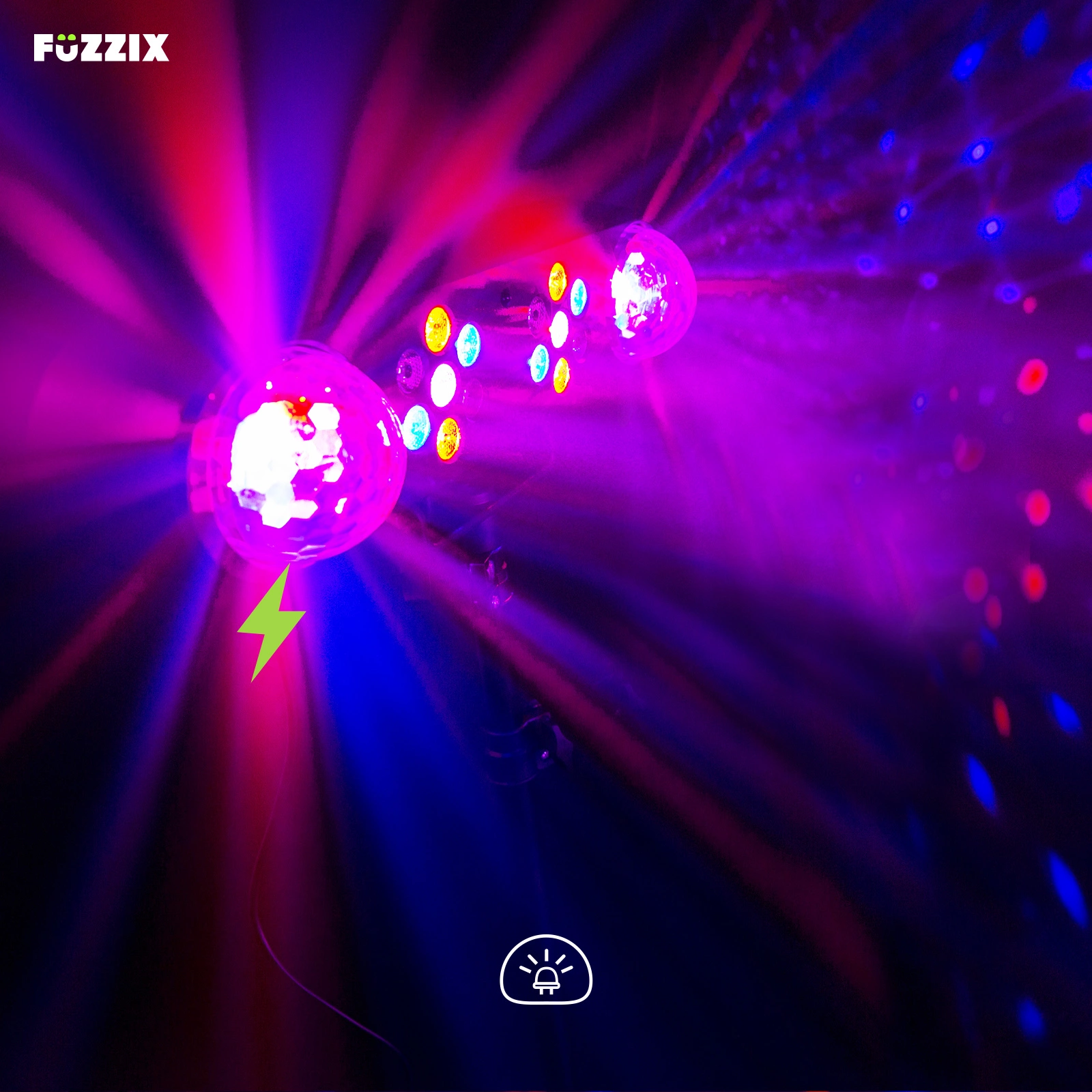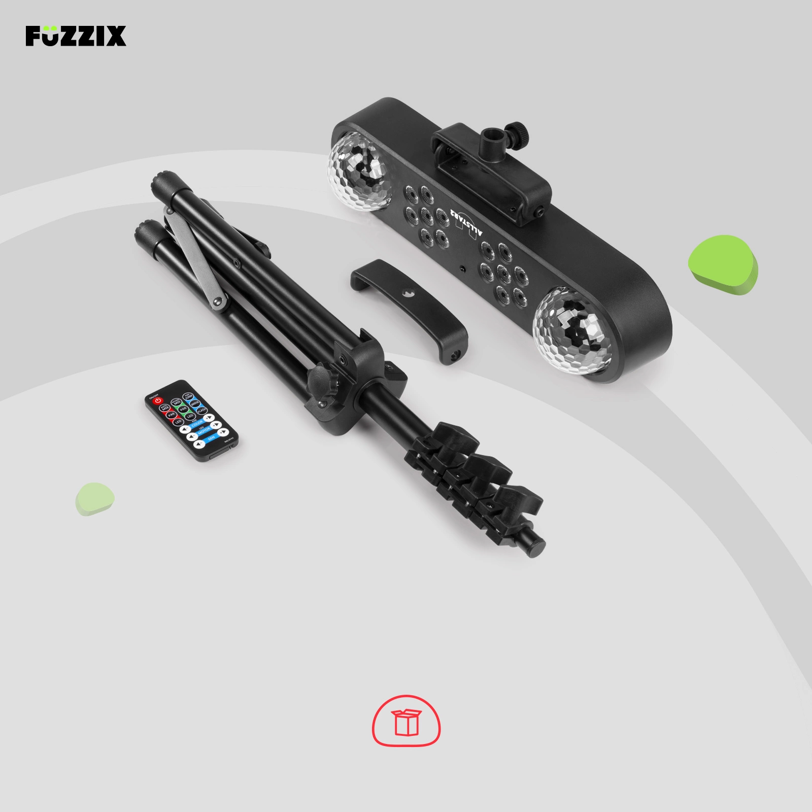 Obsługa światła dyskotekowego AllStar2 jest łatwa dzięki dołączonemu pilotowi. Wybierz program i ustaw prędkość, a lampka dyskotekowa zajmie się resztą. Możesz także wybrać różne efekty, takie jak stroboskop lub efekt zanikania. Wbudowany mikrofon pozwala mu reagować na dźwięk, dzięki czemu nie musisz się o to martwić. Fuzzix AllStar2 jest zatem najlepszym wyborem na przytulne domowe przyjęcie, na którym potrzebujesz kolorowego i ruchomego oświetlenia.